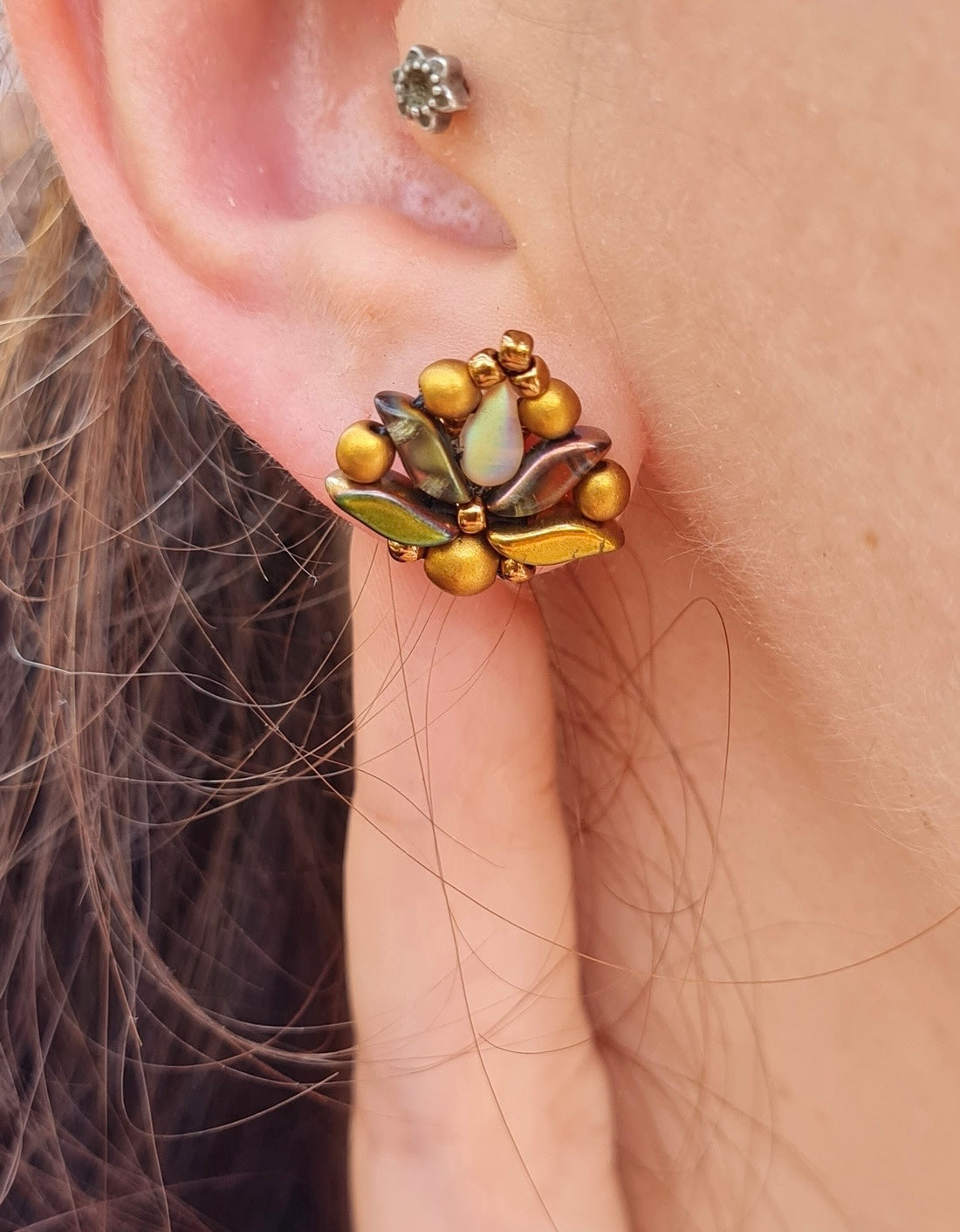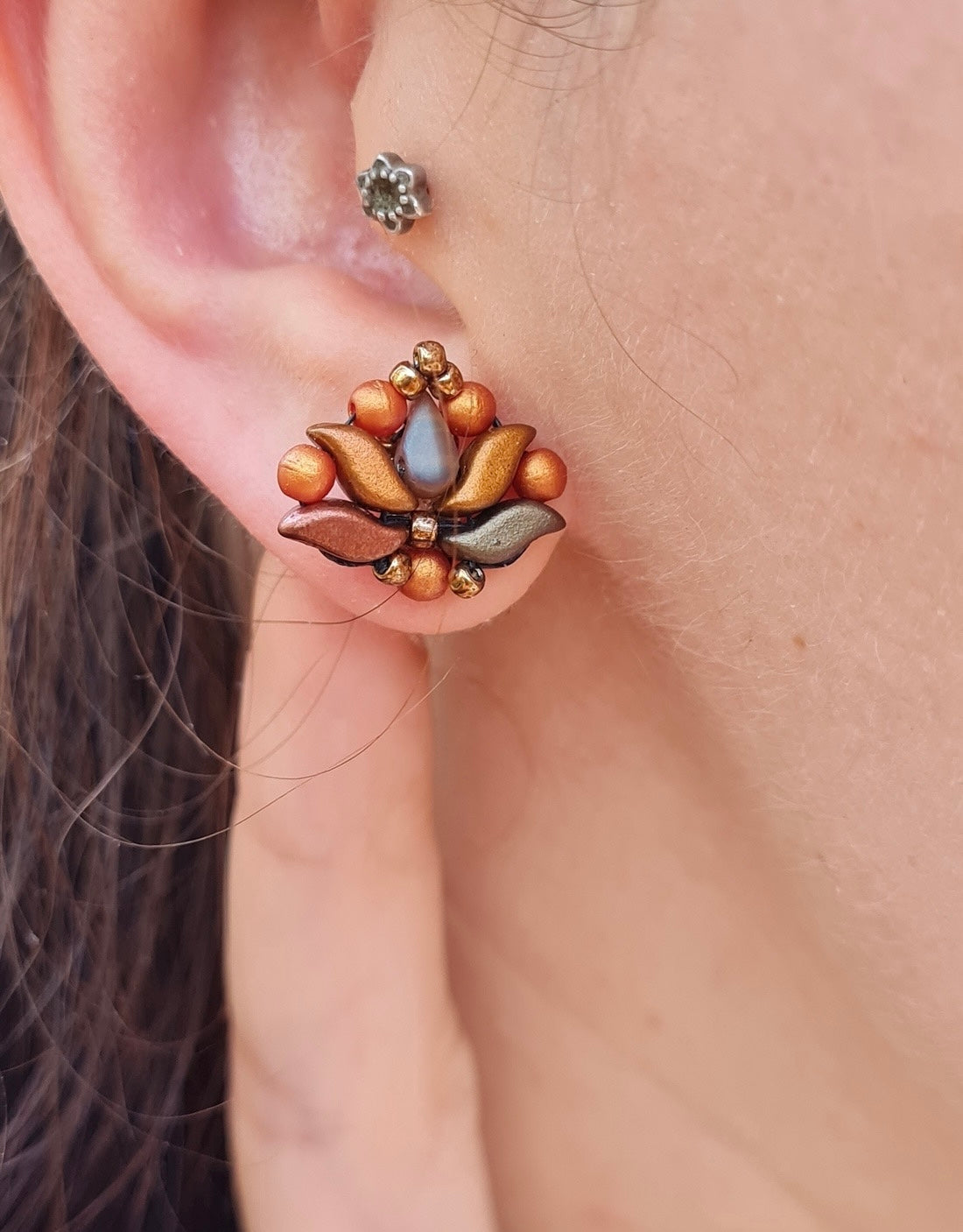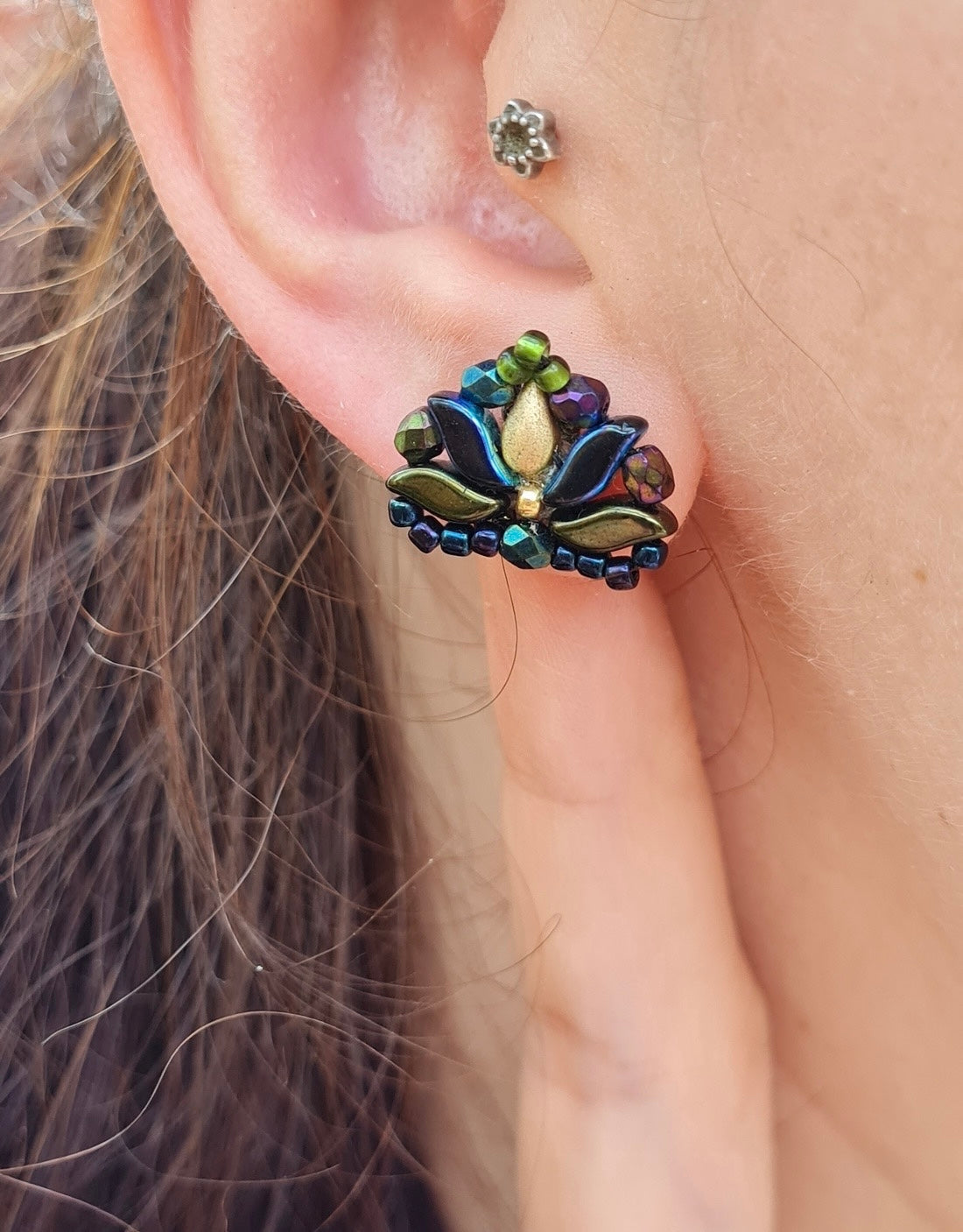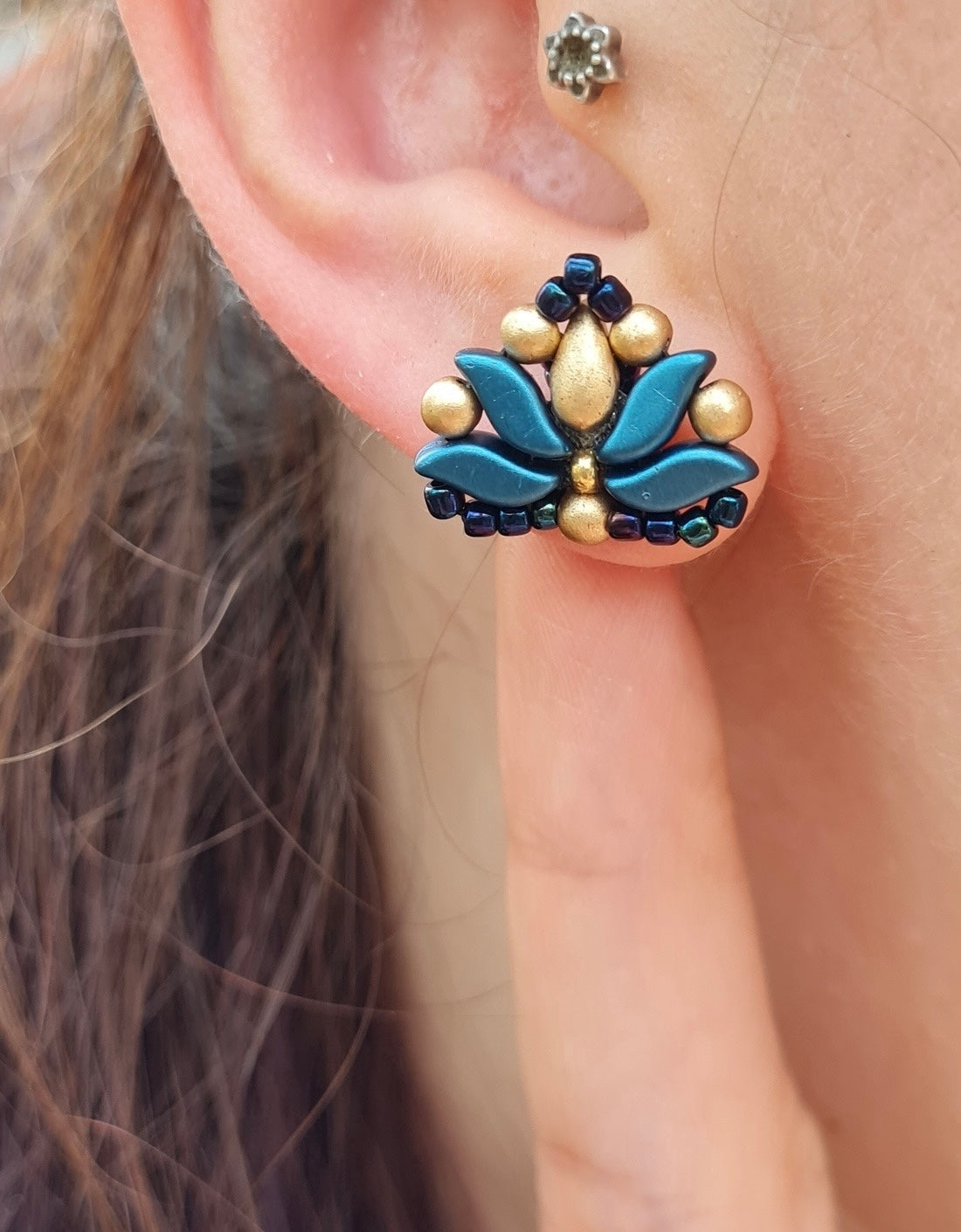 A minta teljesen egyedi, így biztosan nem találkozol majd szembe vele. Ez a fajta bedugós fülbevaló nem csupán ragasztva van, hanem egy speciális gyöngyös rögzítést is kapott, hogy szuper stabil legyen hosszú távon is. A fülbevalók orvosi fém alkatrészekkel készülnek.