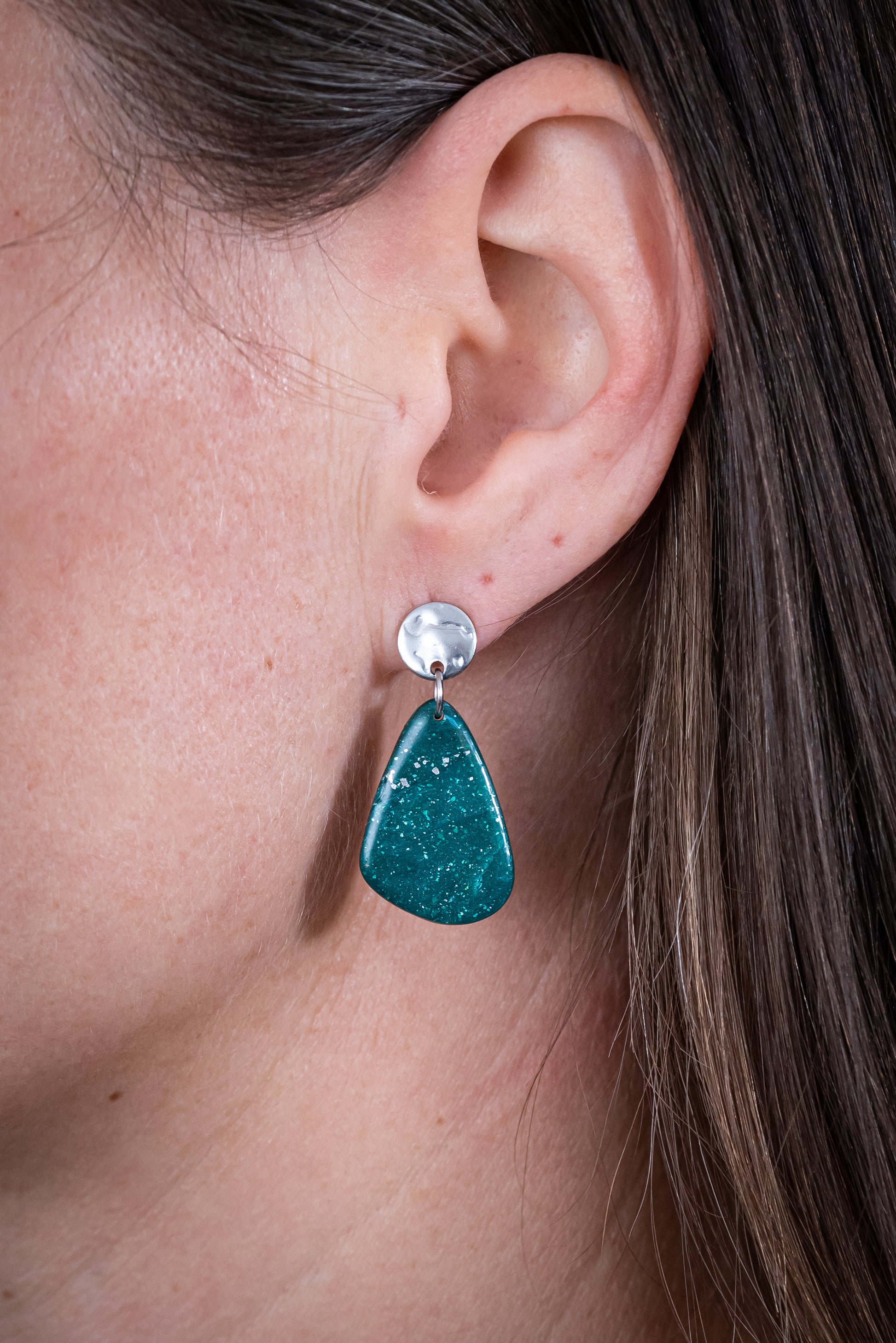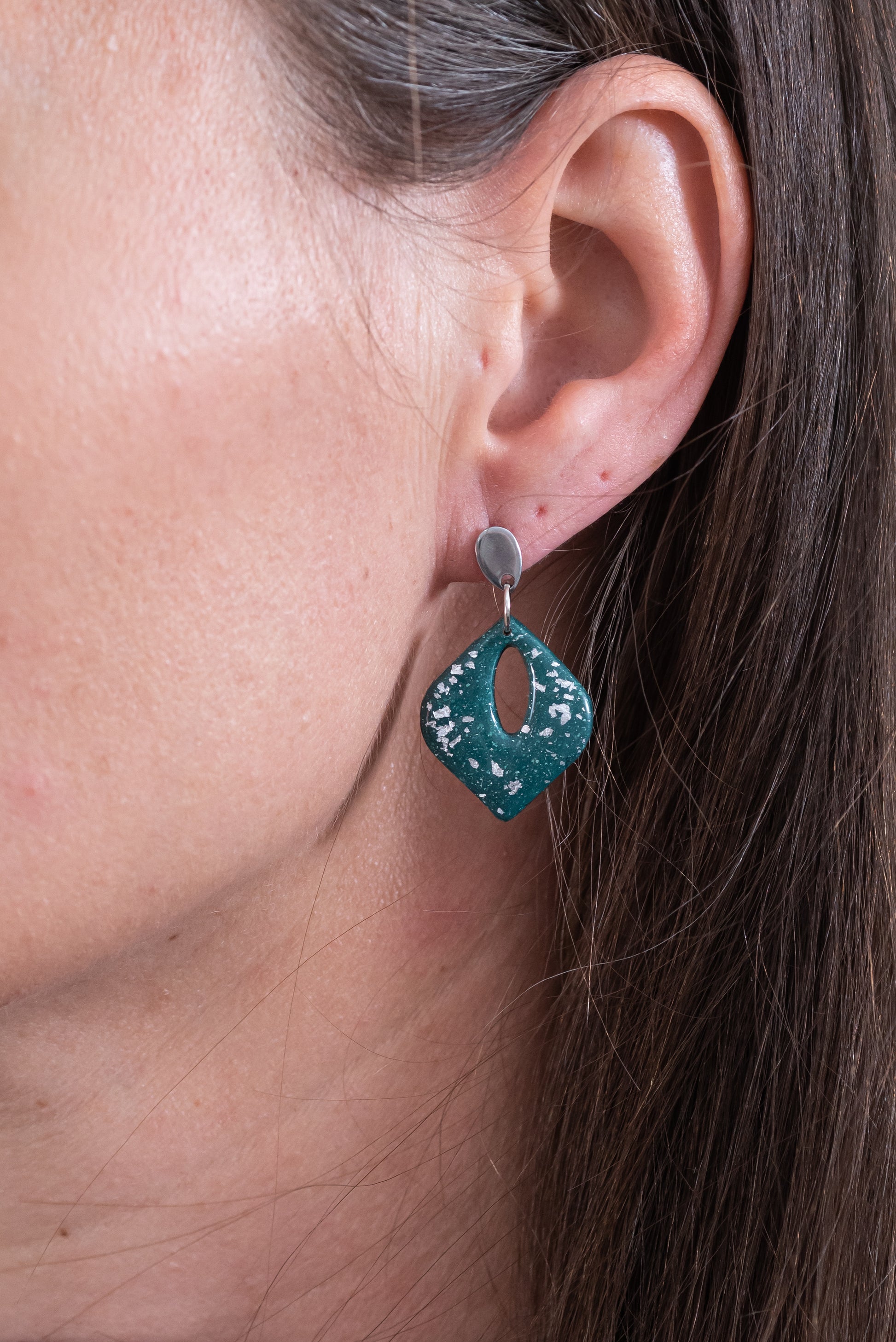 Emera kicsi csüngős fülbevaló többféle formában, márványos zöld színben