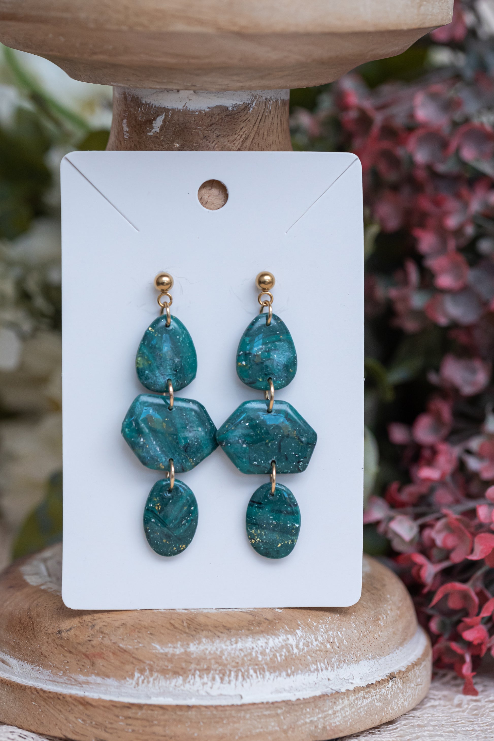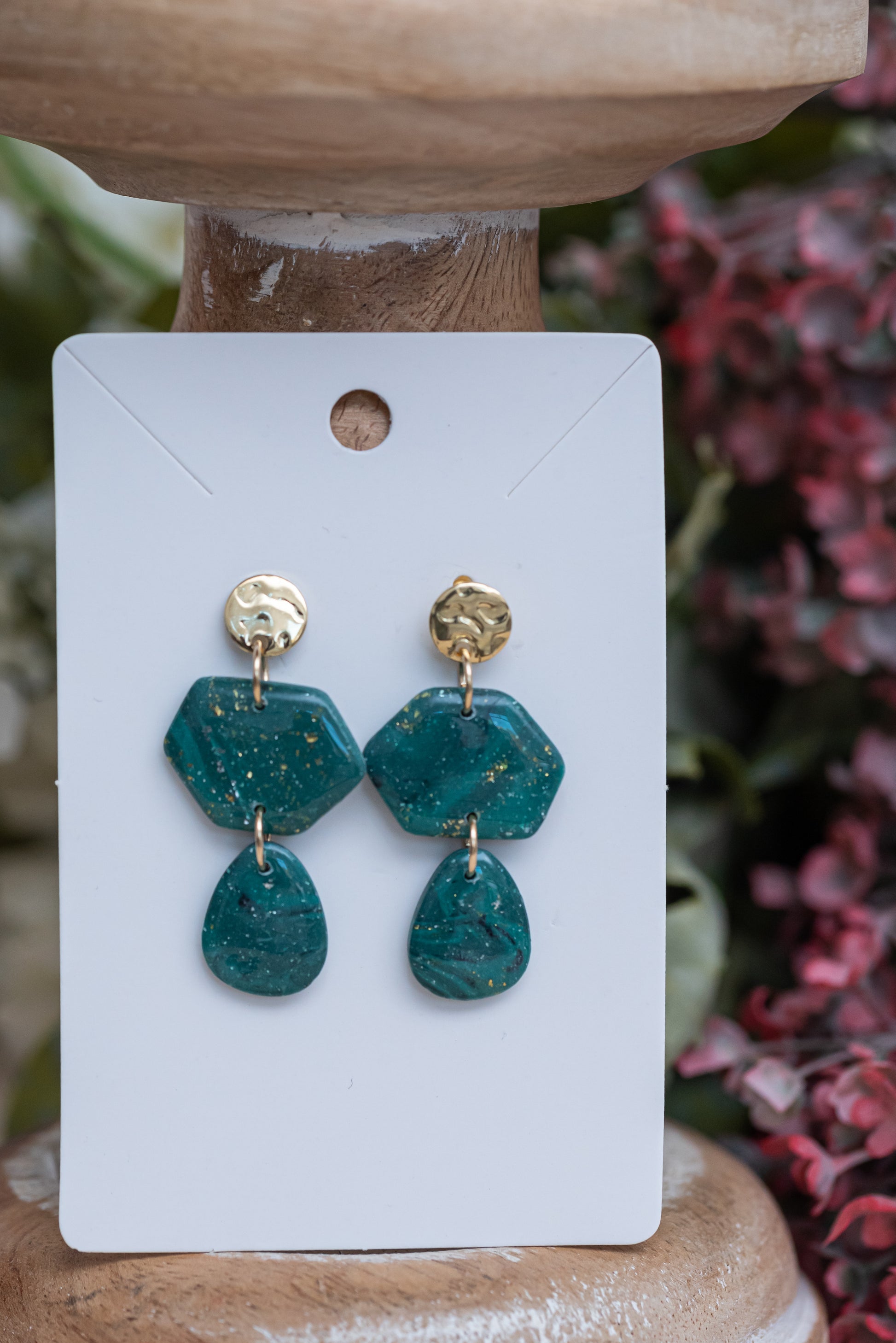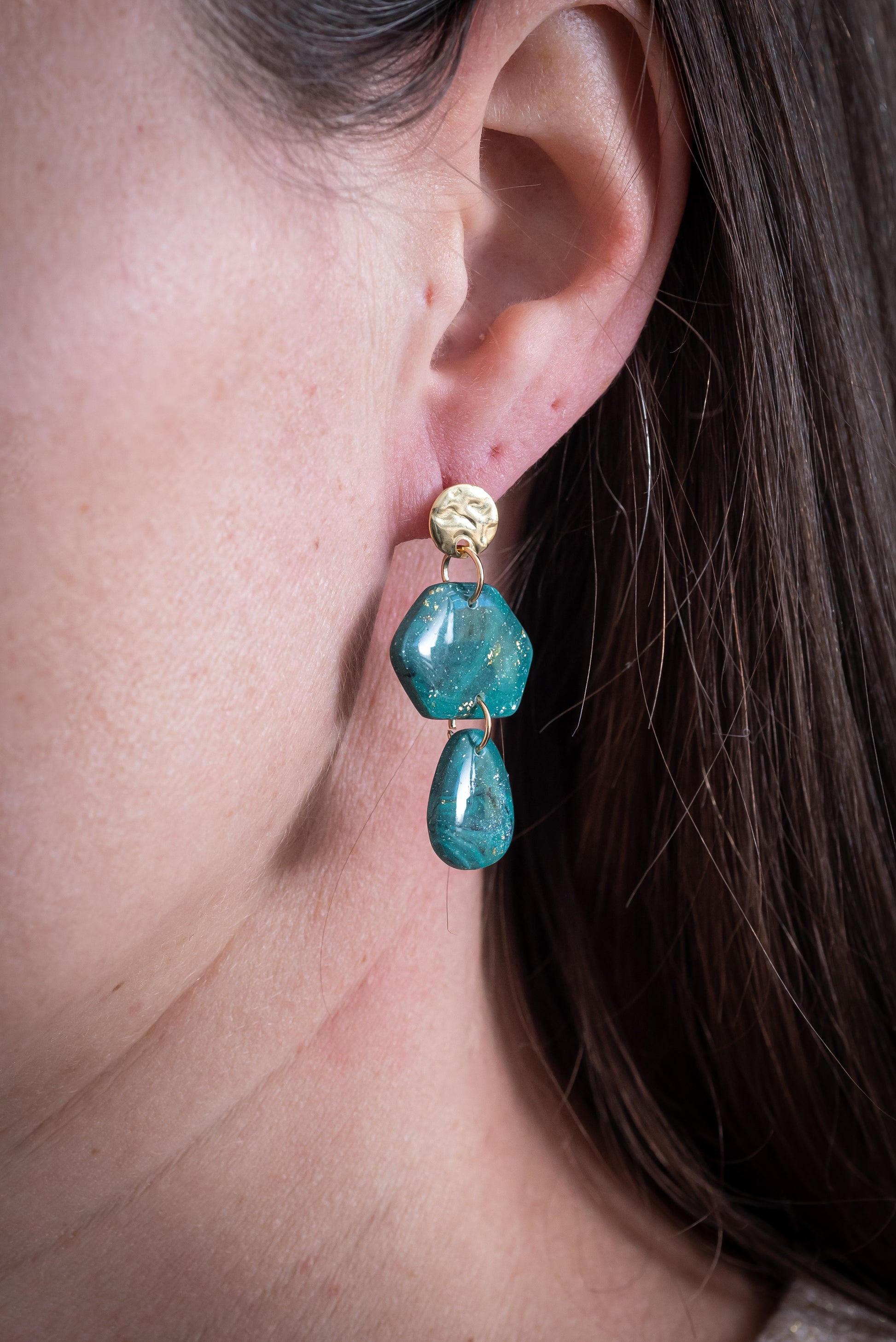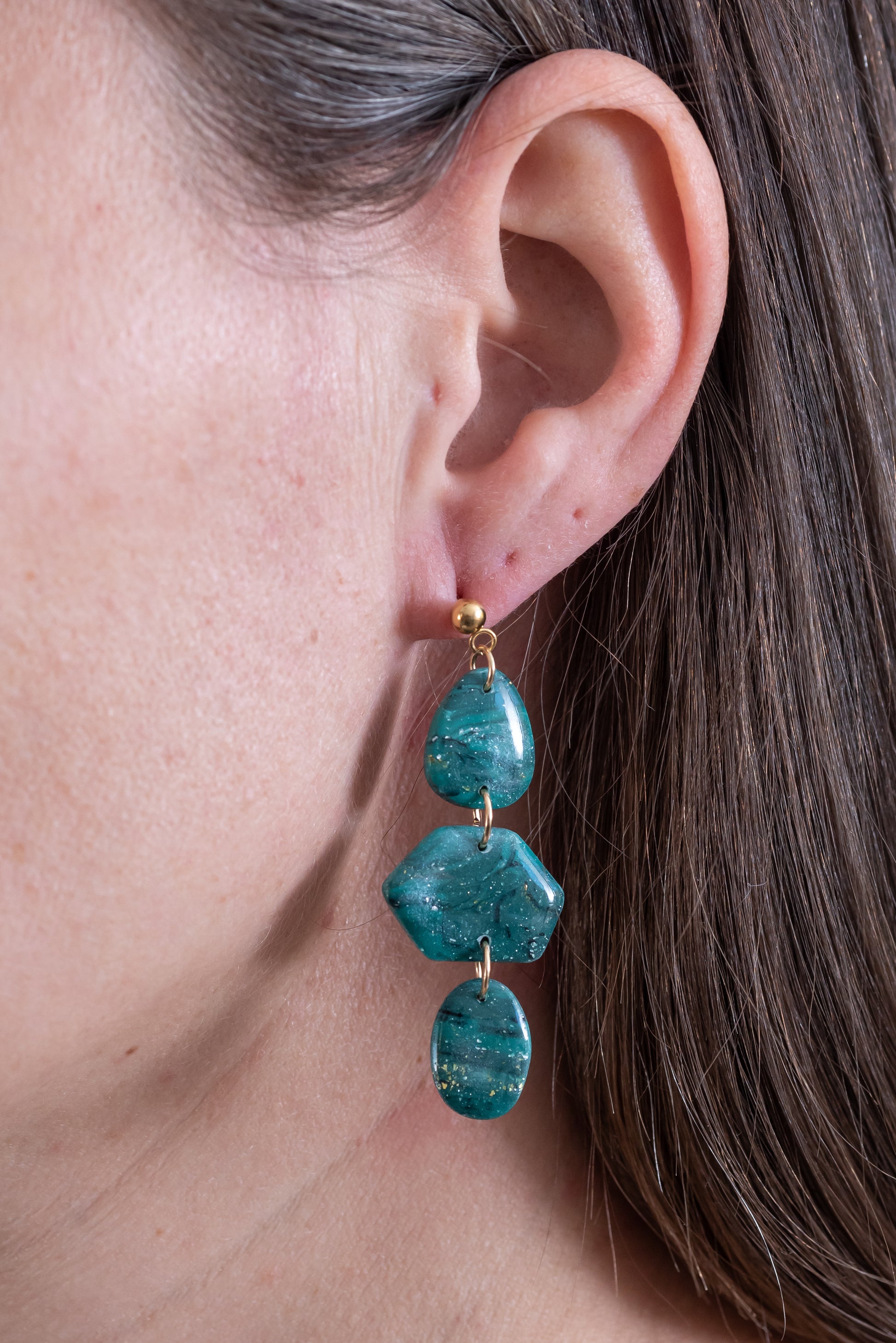 Emera nagyobb csüngős fülbevaló többféle formában, márványos zöld színben
