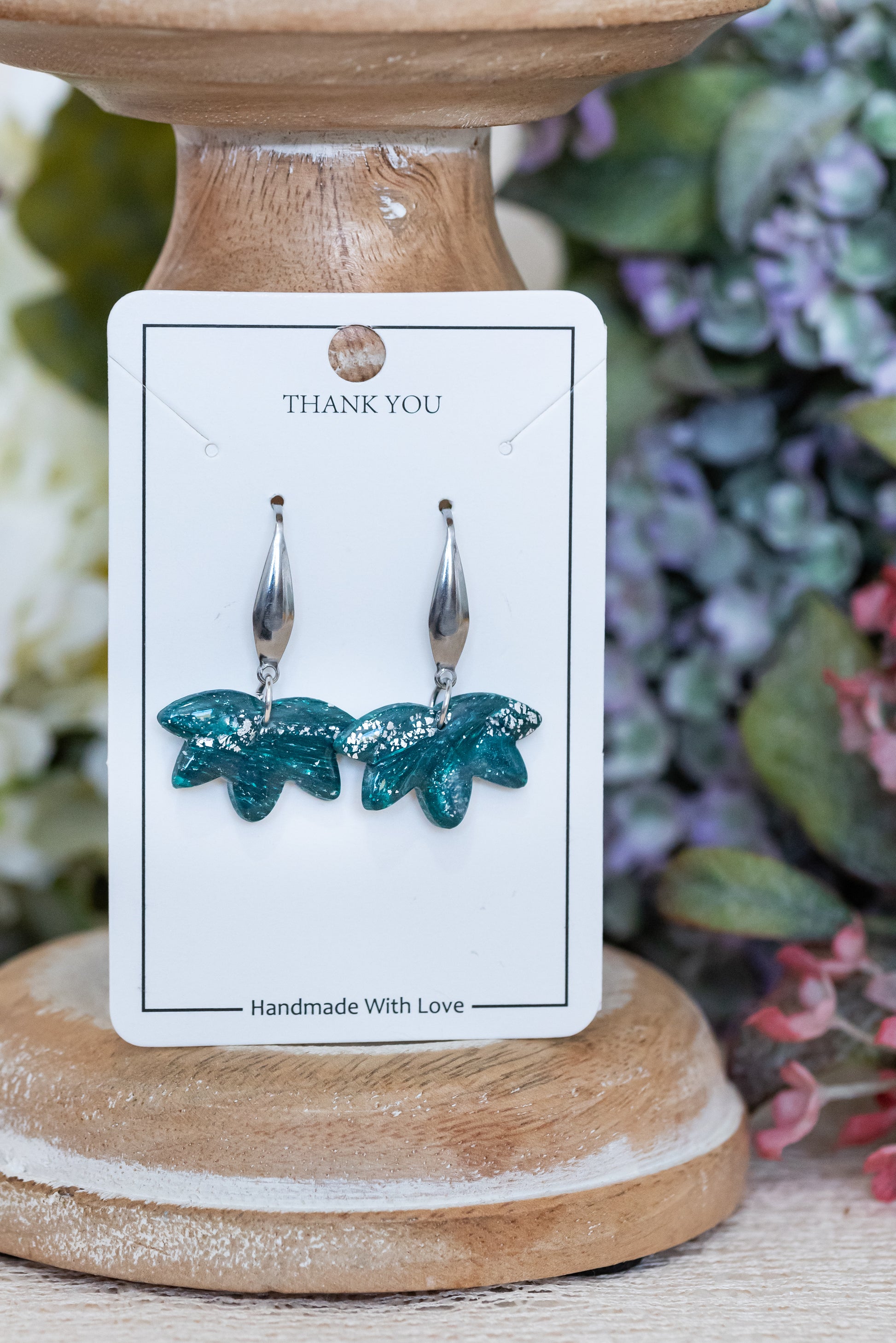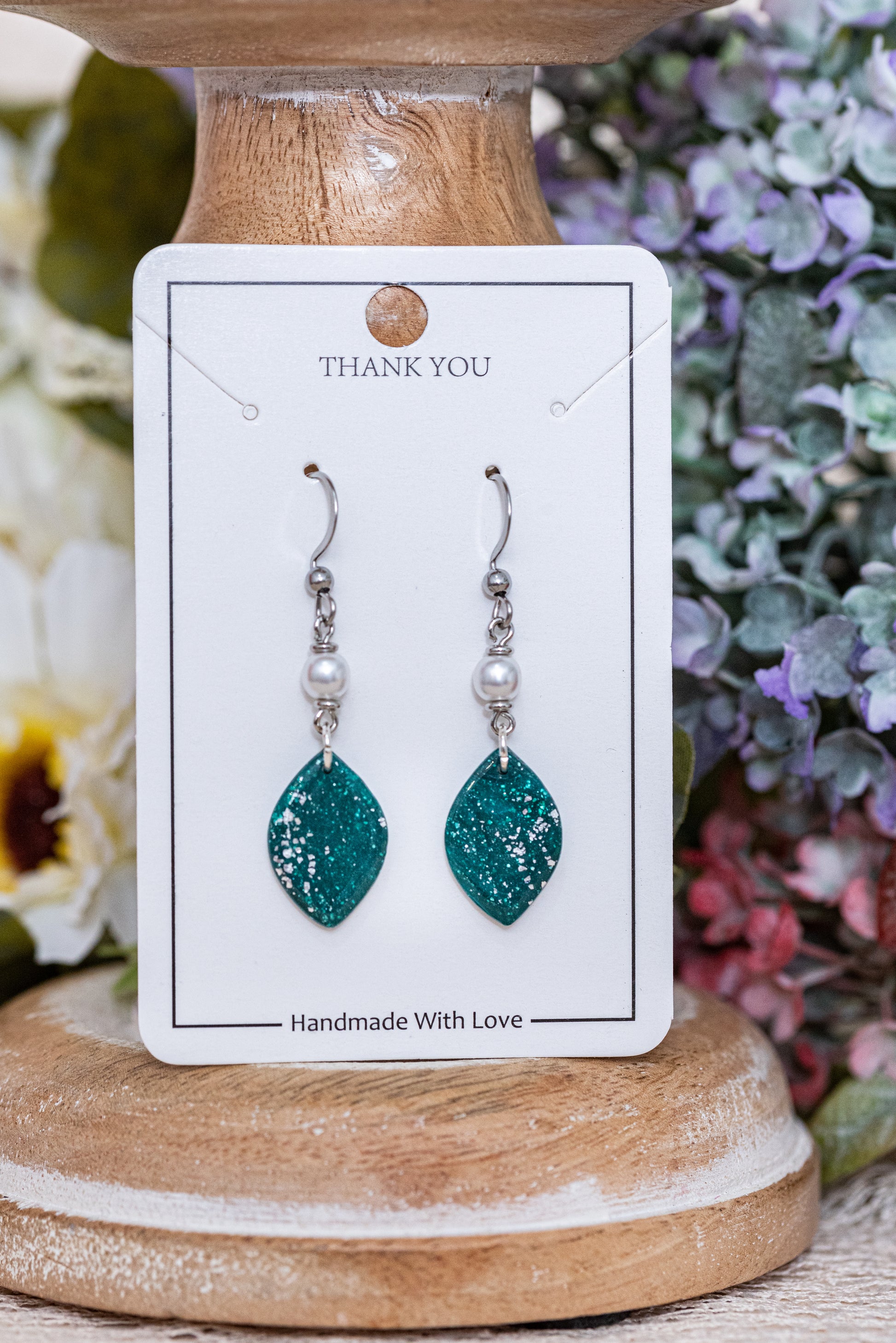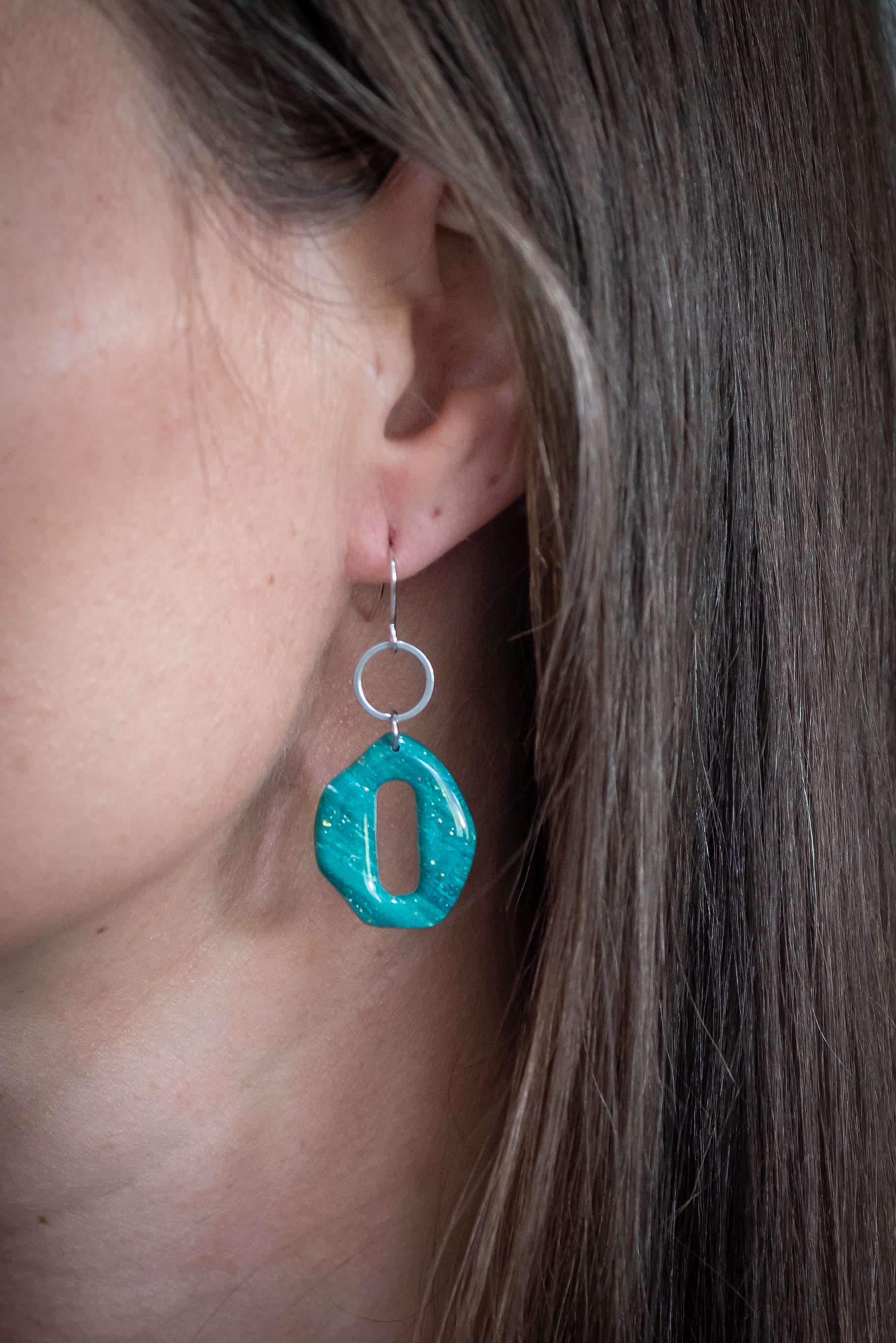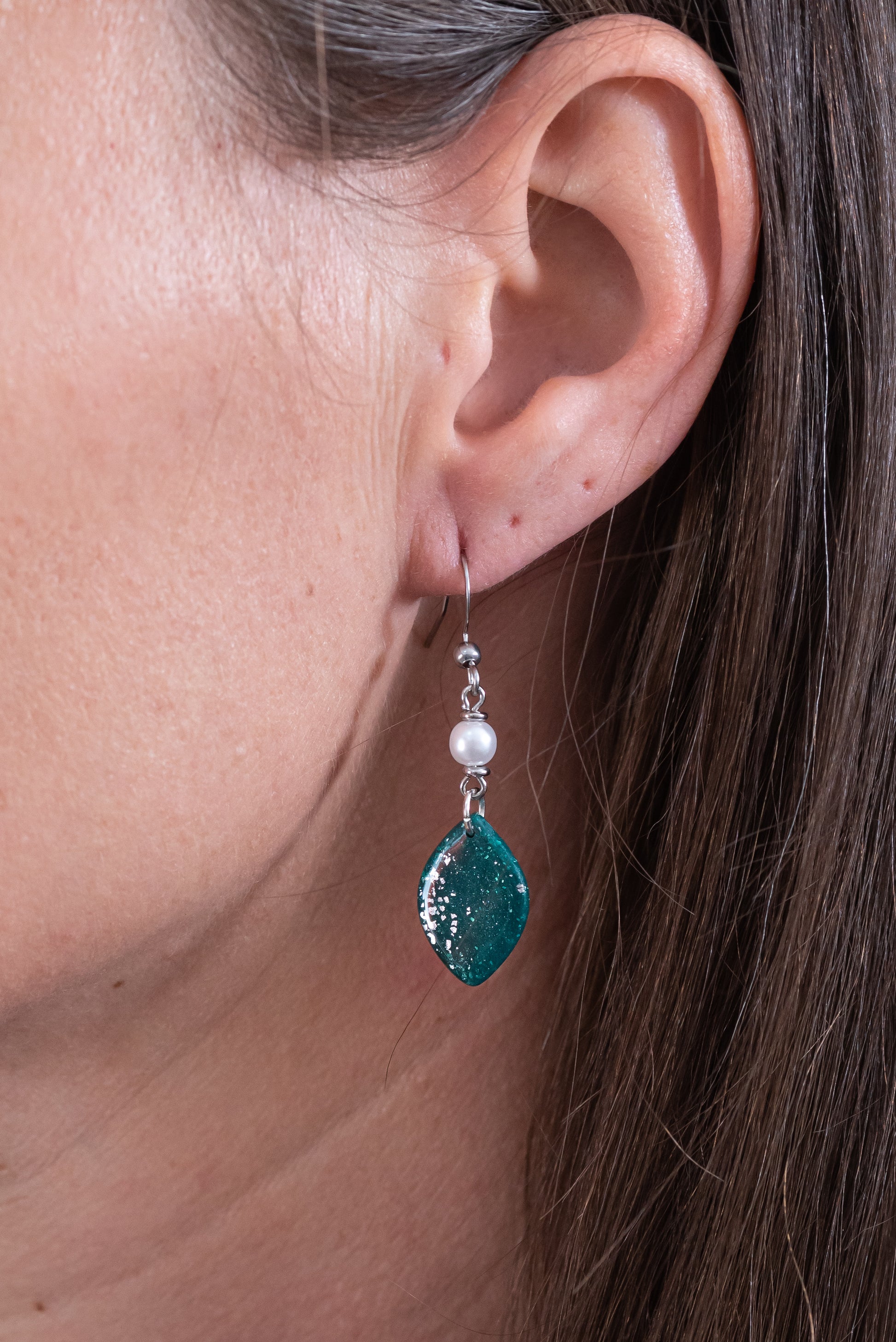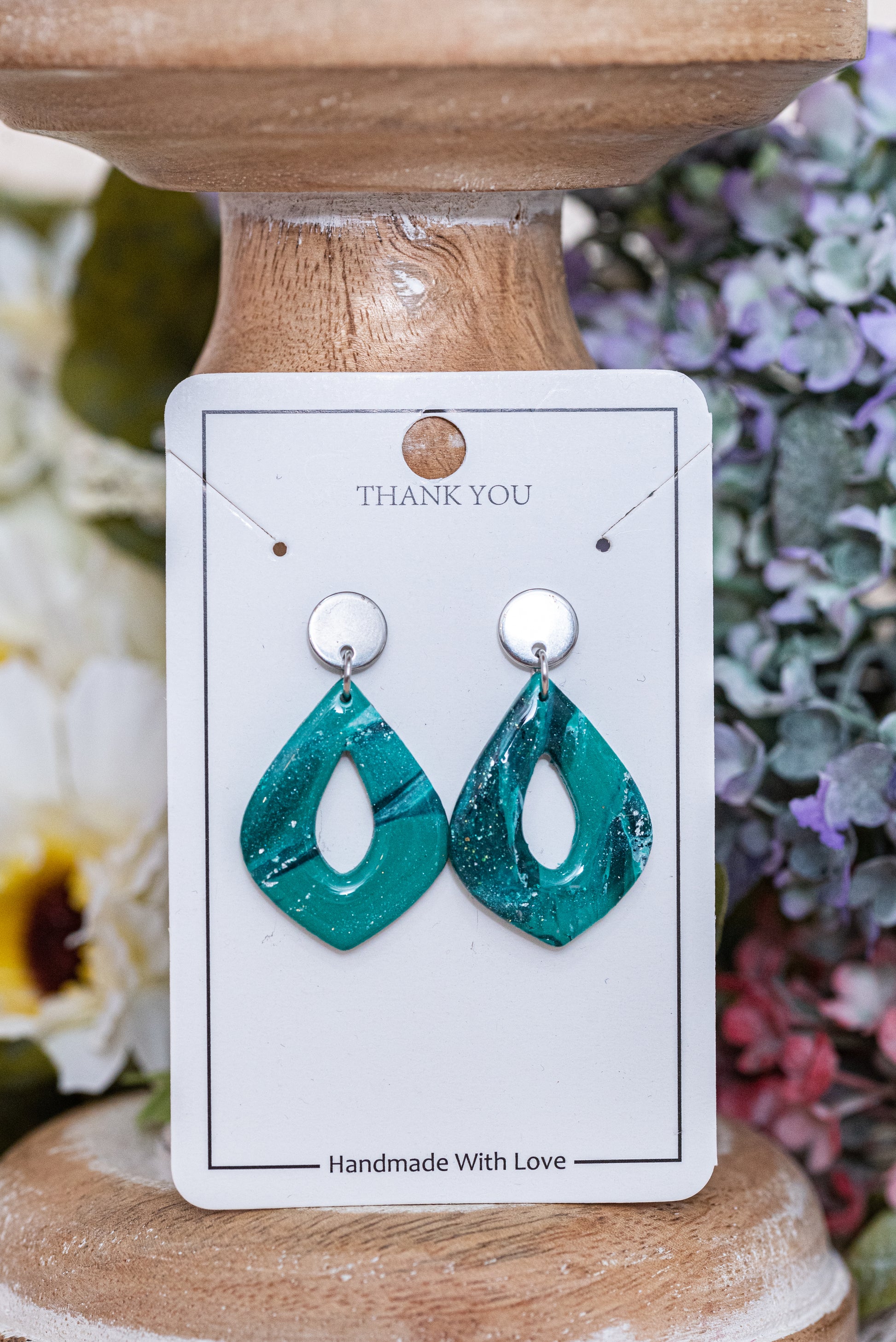 Emera nagyobb csüngős fülbevaló többféle formában, márványos zöld színben