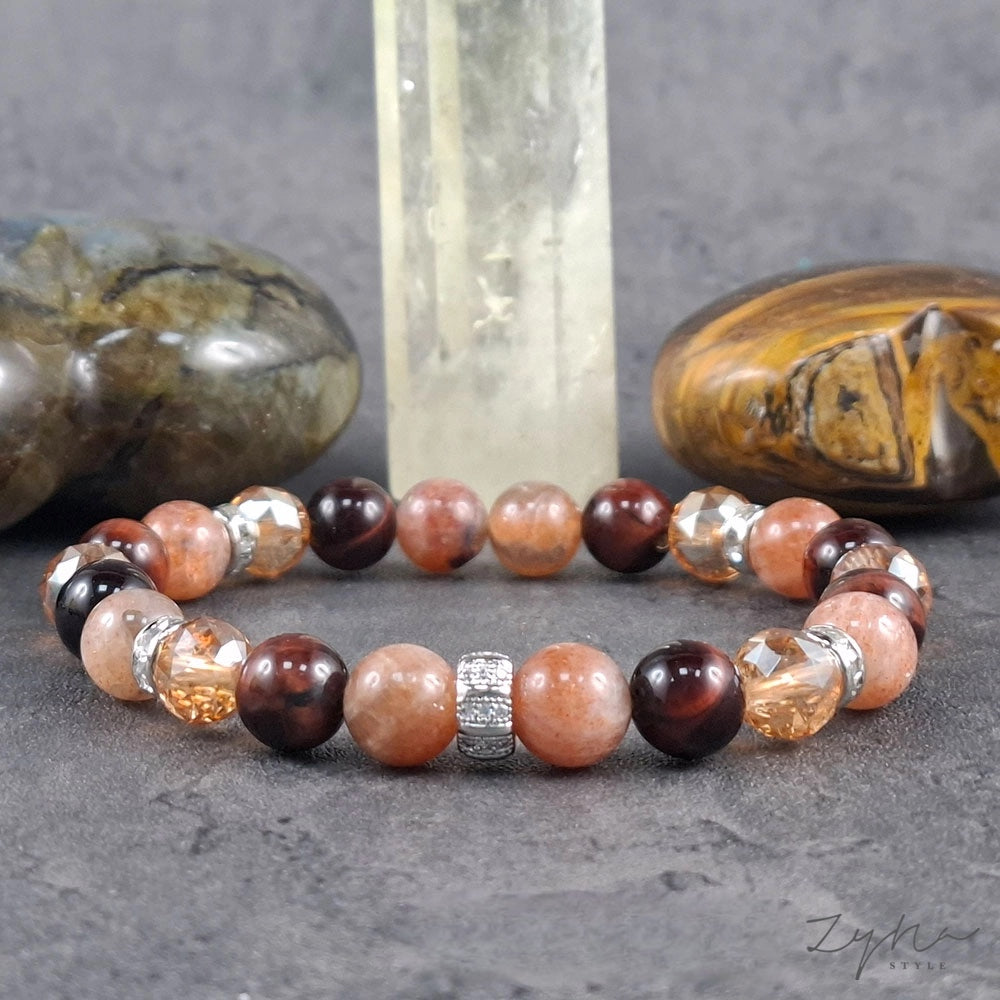 Gyönyörű csillogású vitalizáló női ásvány karkötő kiváló minőségű napkővel.
