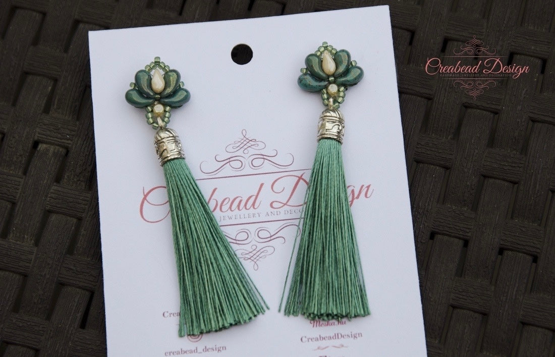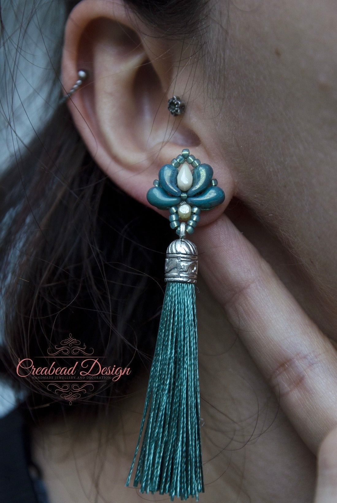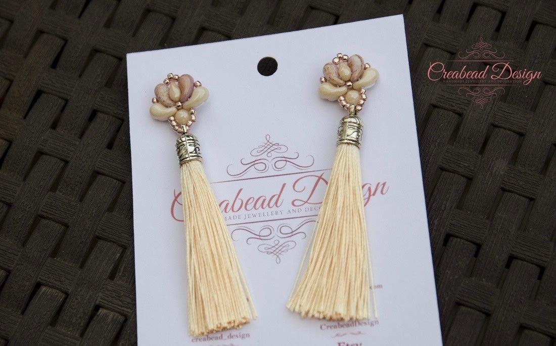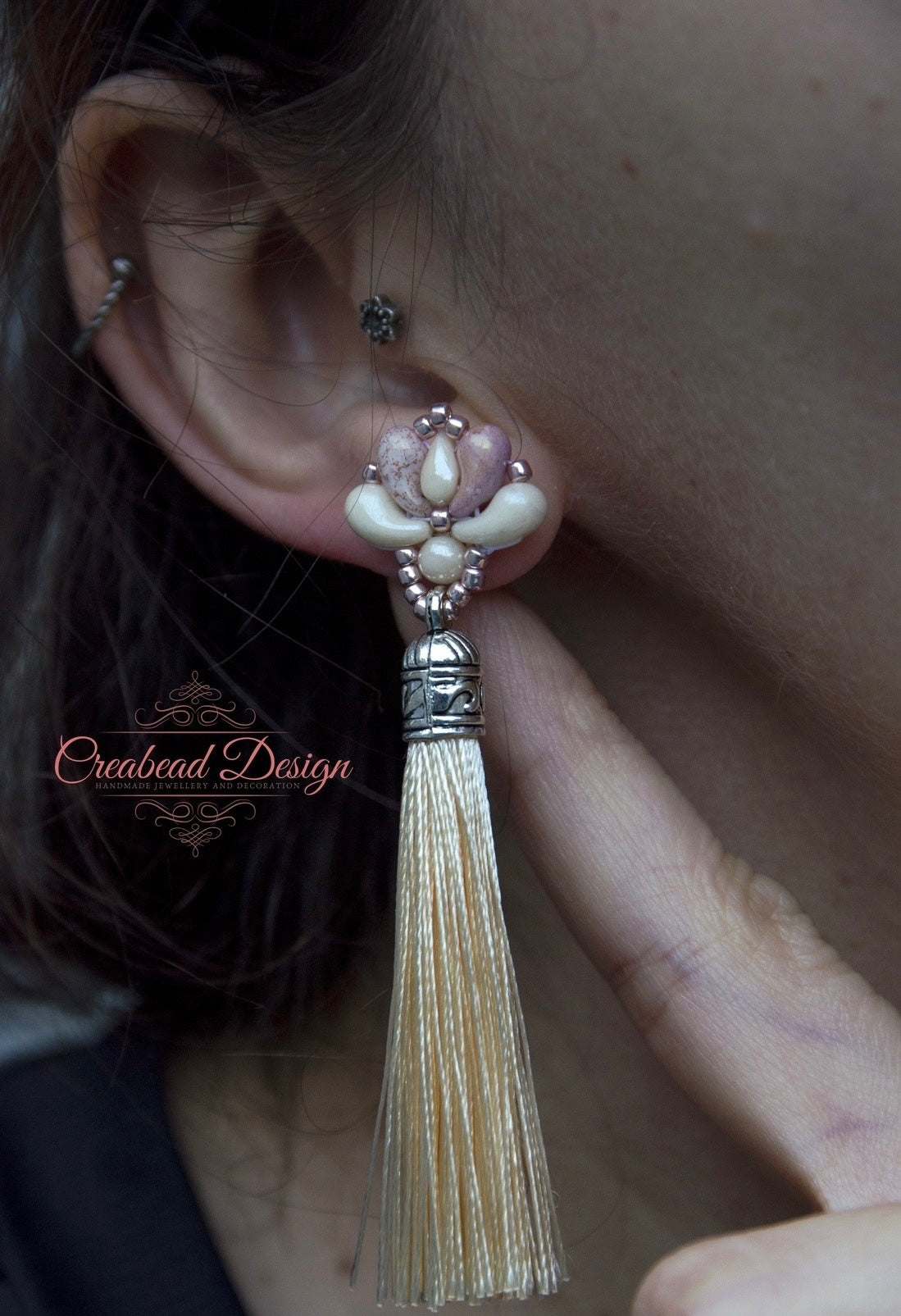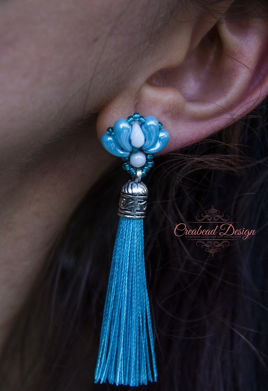 Anyaguk a legjobb minőségű cseh és japán gyöngyök, japán cérna és cérnabojt. A fülbevalók orvosi fém alkatrészekkel készülnek. A fülbevaló mintája egyedi készítésű, így biztosan különleges ékszert választasz.