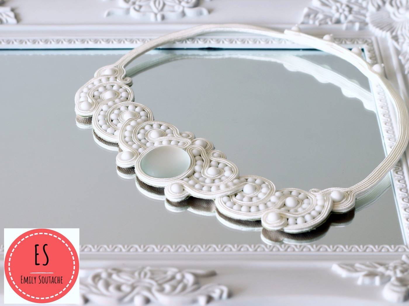 Egyedi tervezés alapján készült, kézzel varrott sujtás esküvői ékszer, sujtás nyakék