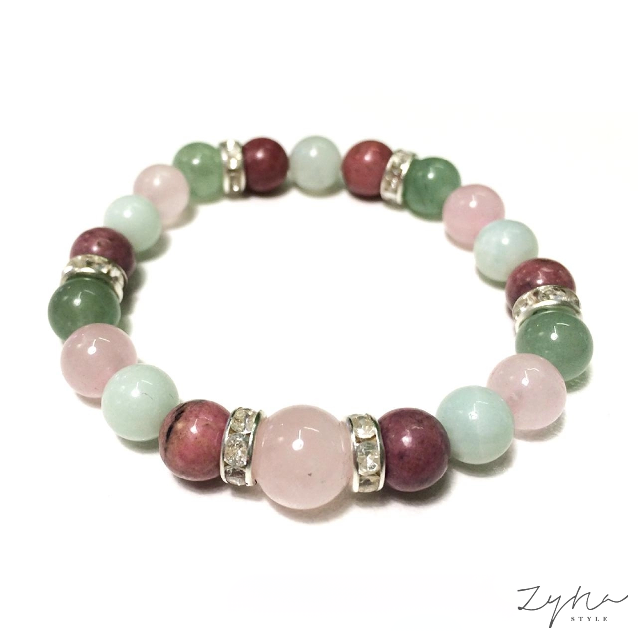 Rózsakvarc, amazonit, rodonit ásványokból készült szerencse karkötő.