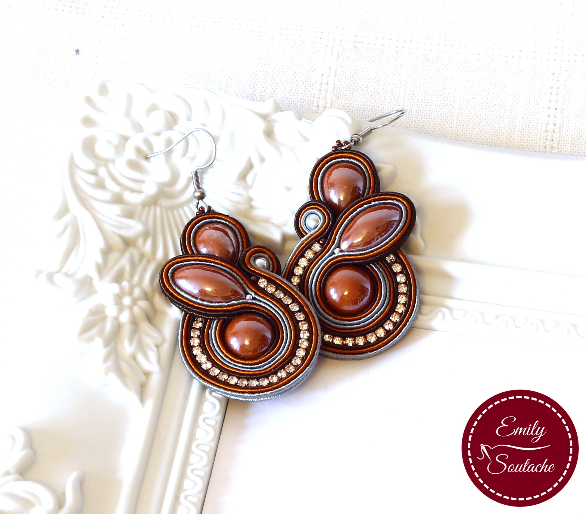 Egyedi tervezés alapján készült, kézzel varrott sujtás fülbevaló