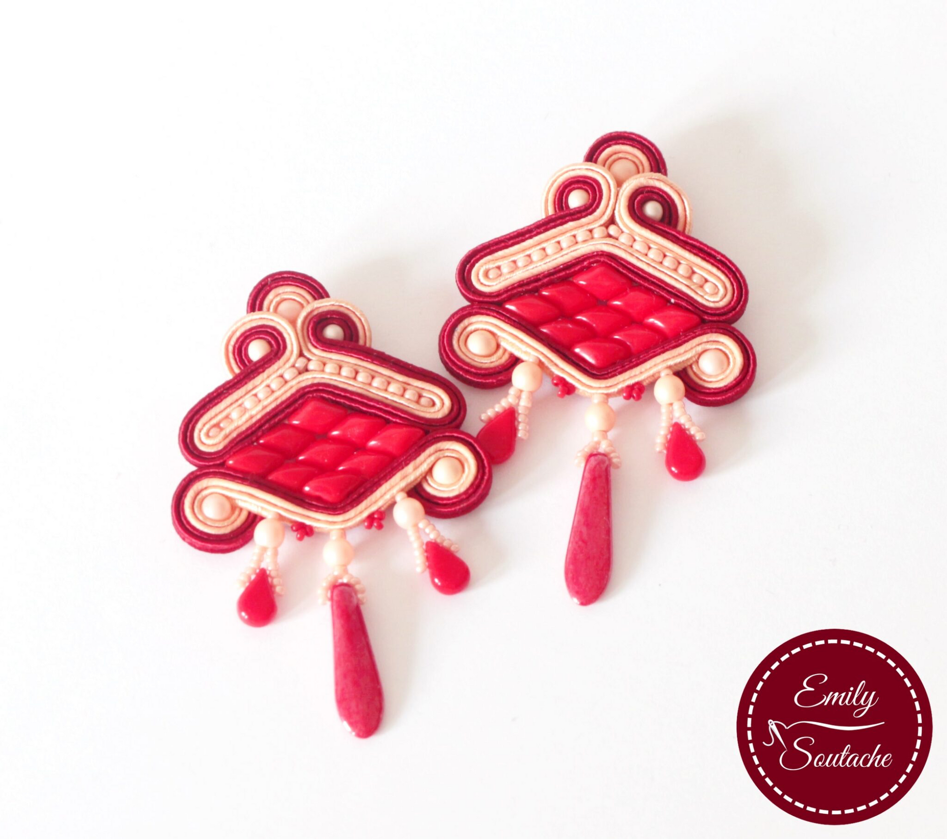 Most egy nagyon különleges formájú ékszert készítettem piros-barack színösszeállításban, a tőlem már megszokott csoda szép porcelán lencsék felhasználásával.”