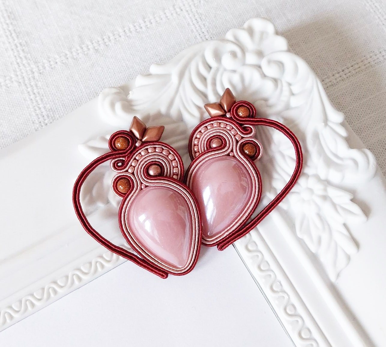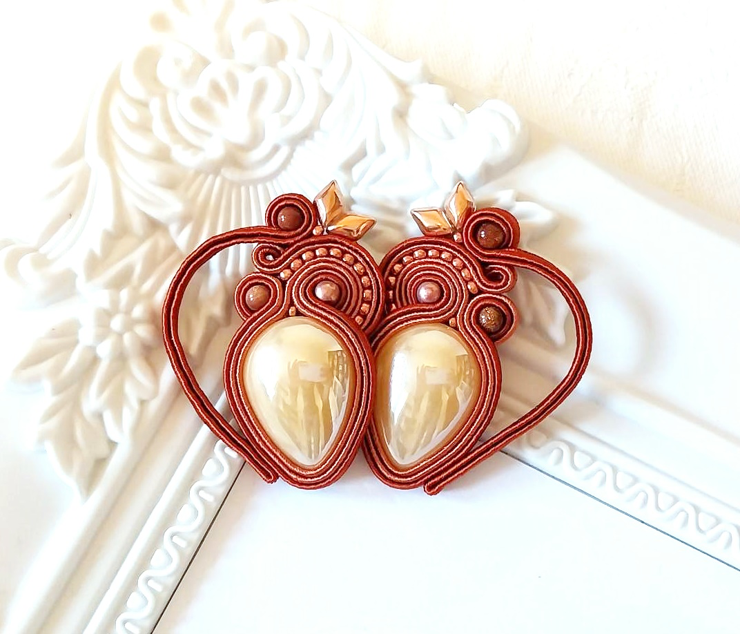 Így született meg a Szív küldi sorozatom eme ékes darabja gyönyörű piros és kávébarna színeivel. A fülbevaló közepén egy csepp alakú porcelán lencse található. Hossza: 4,5 cm.”