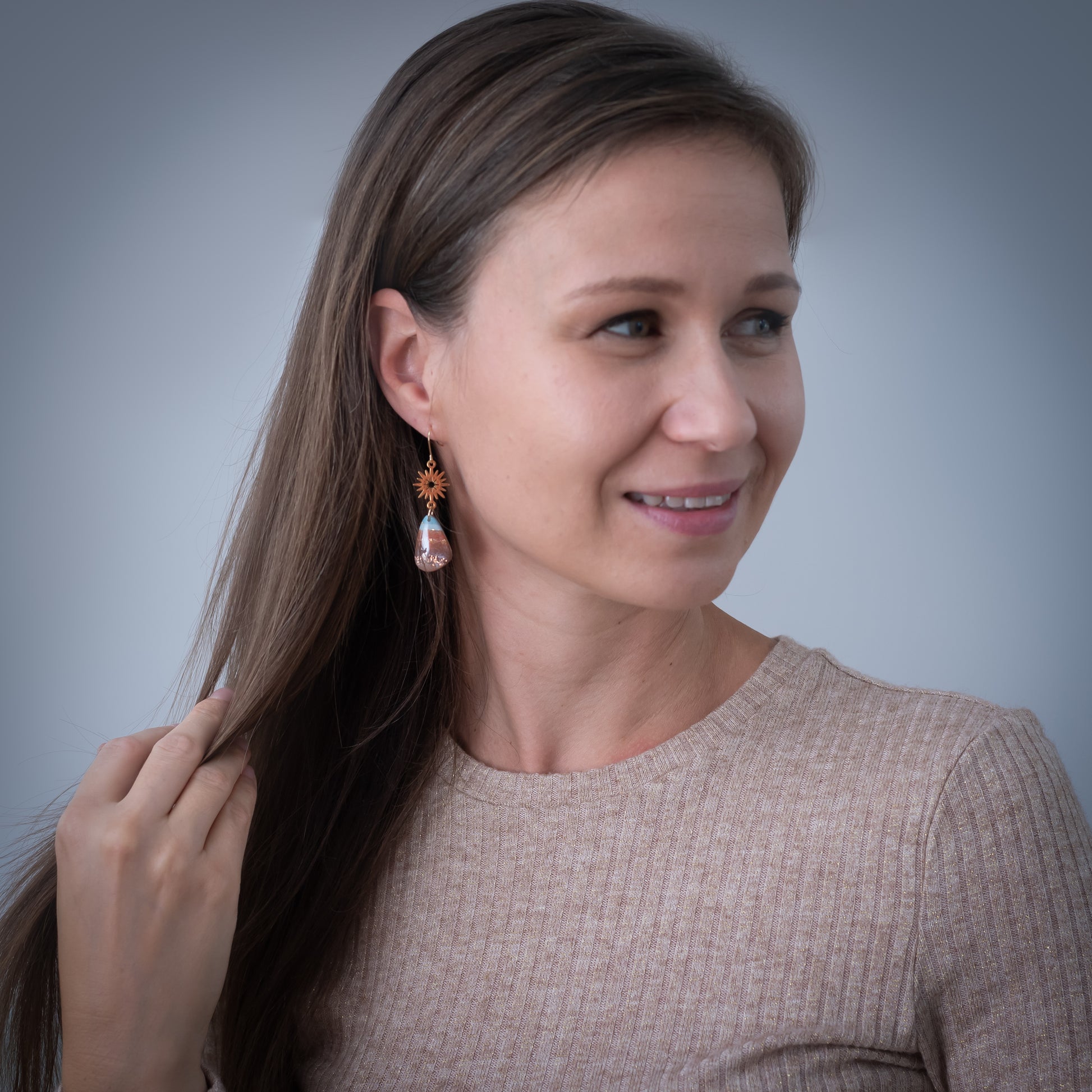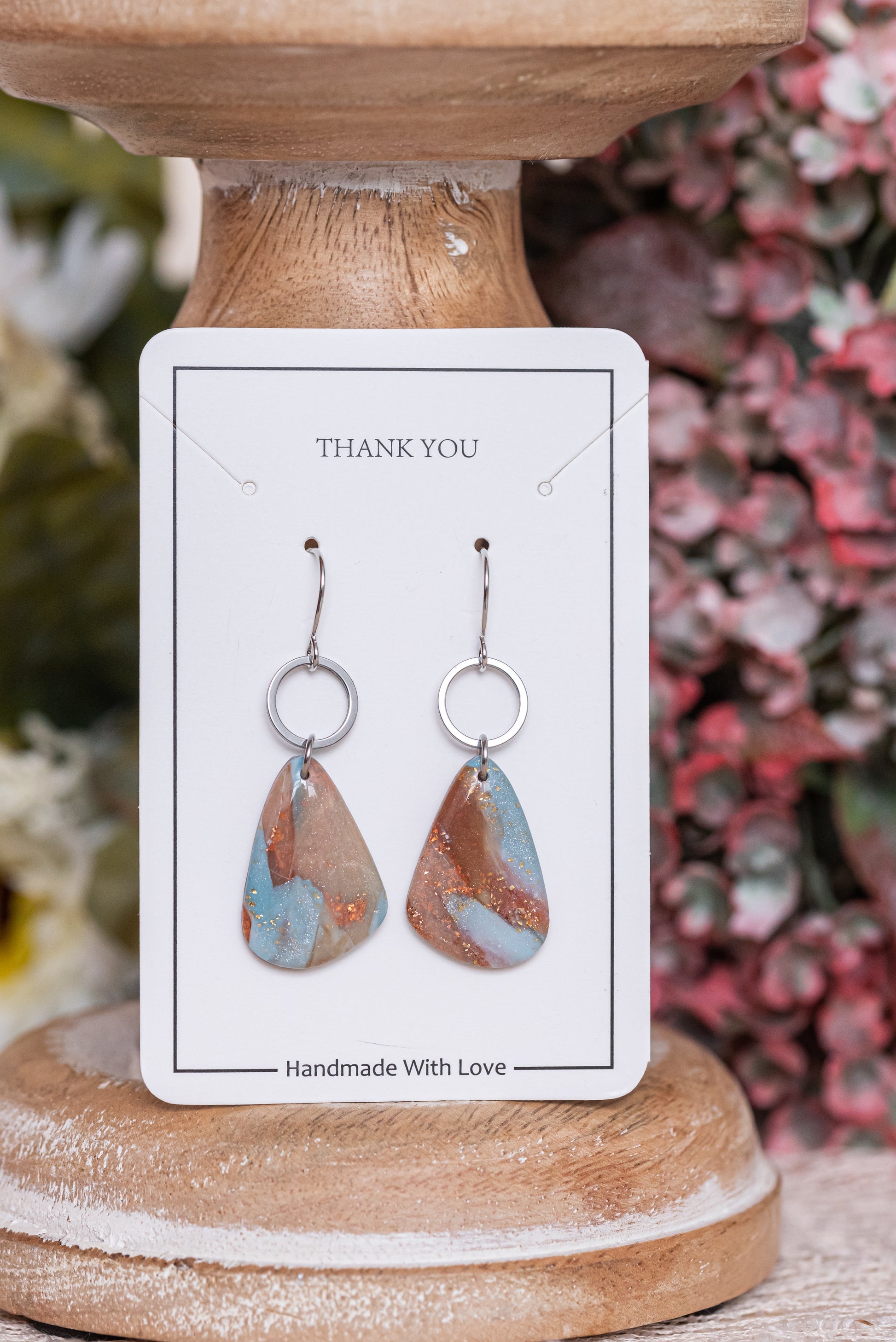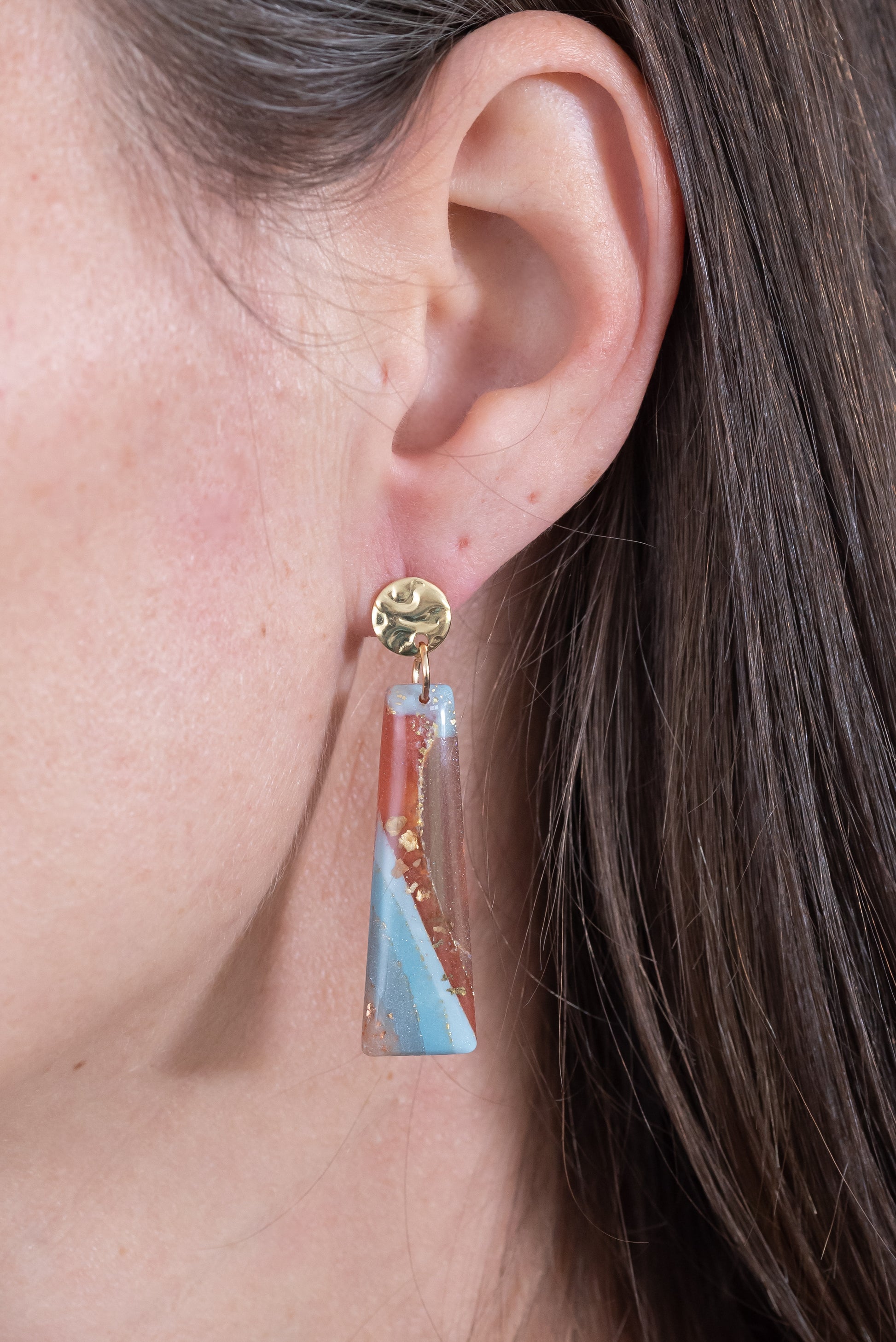 Terra Glow nagyobb csüngős fülbevaló többféle formában, márványos színekben