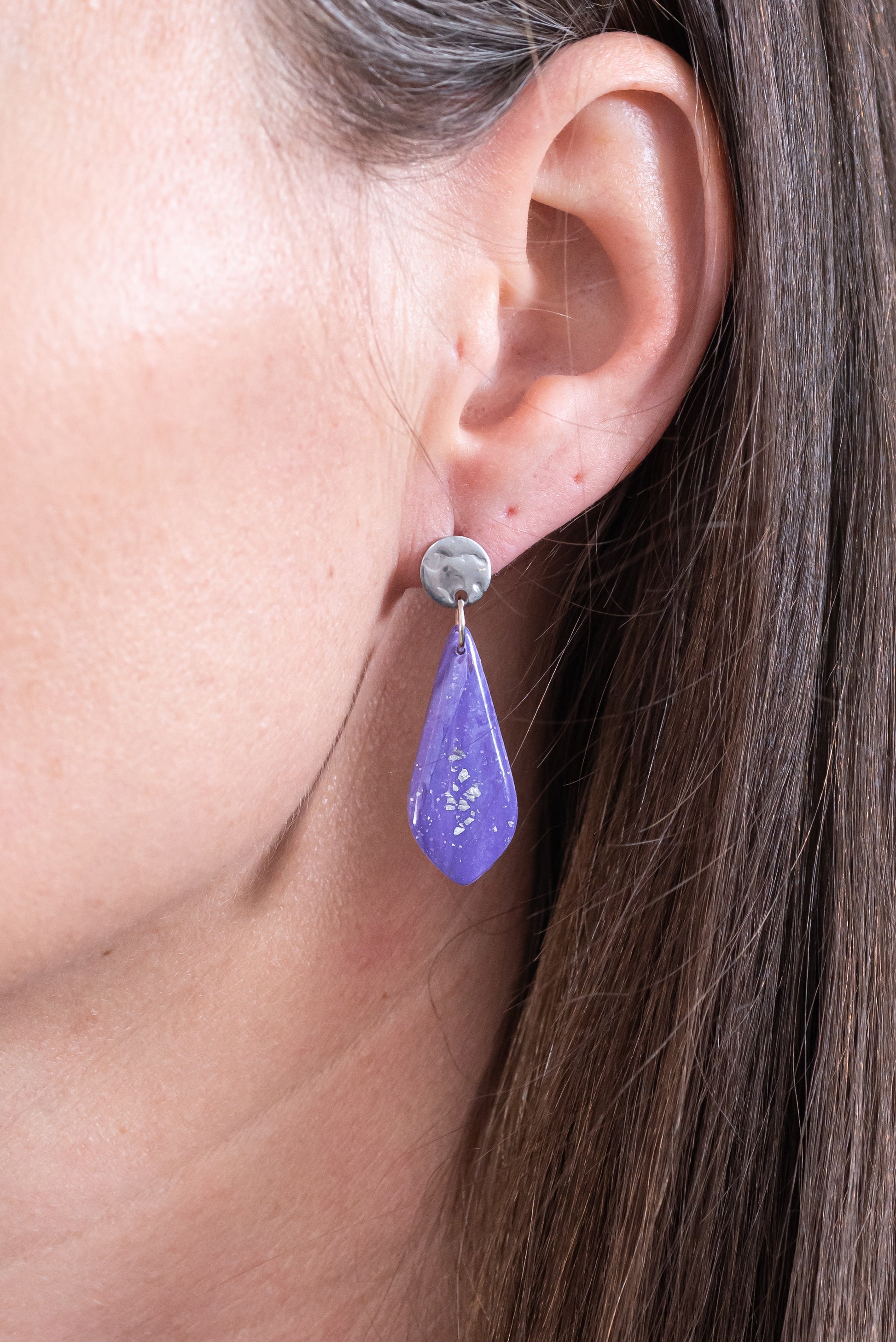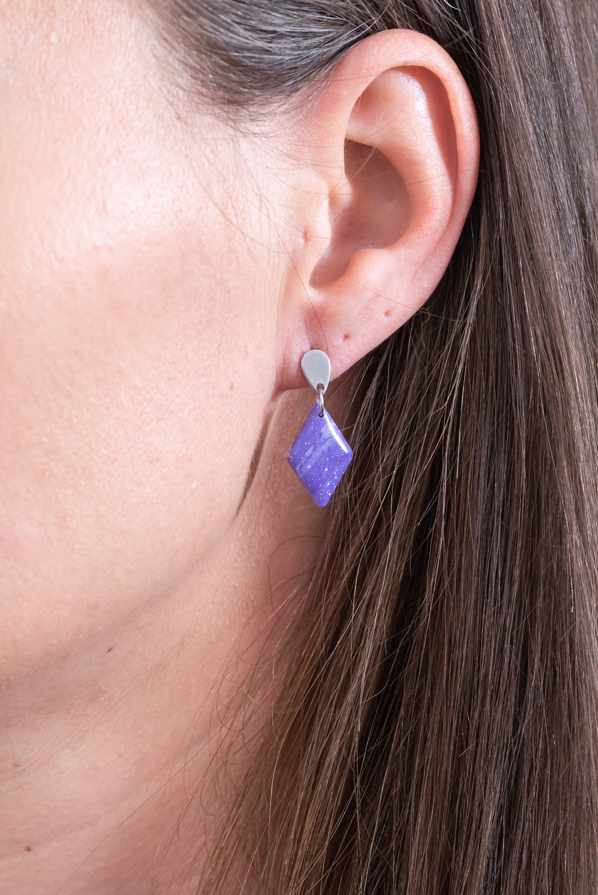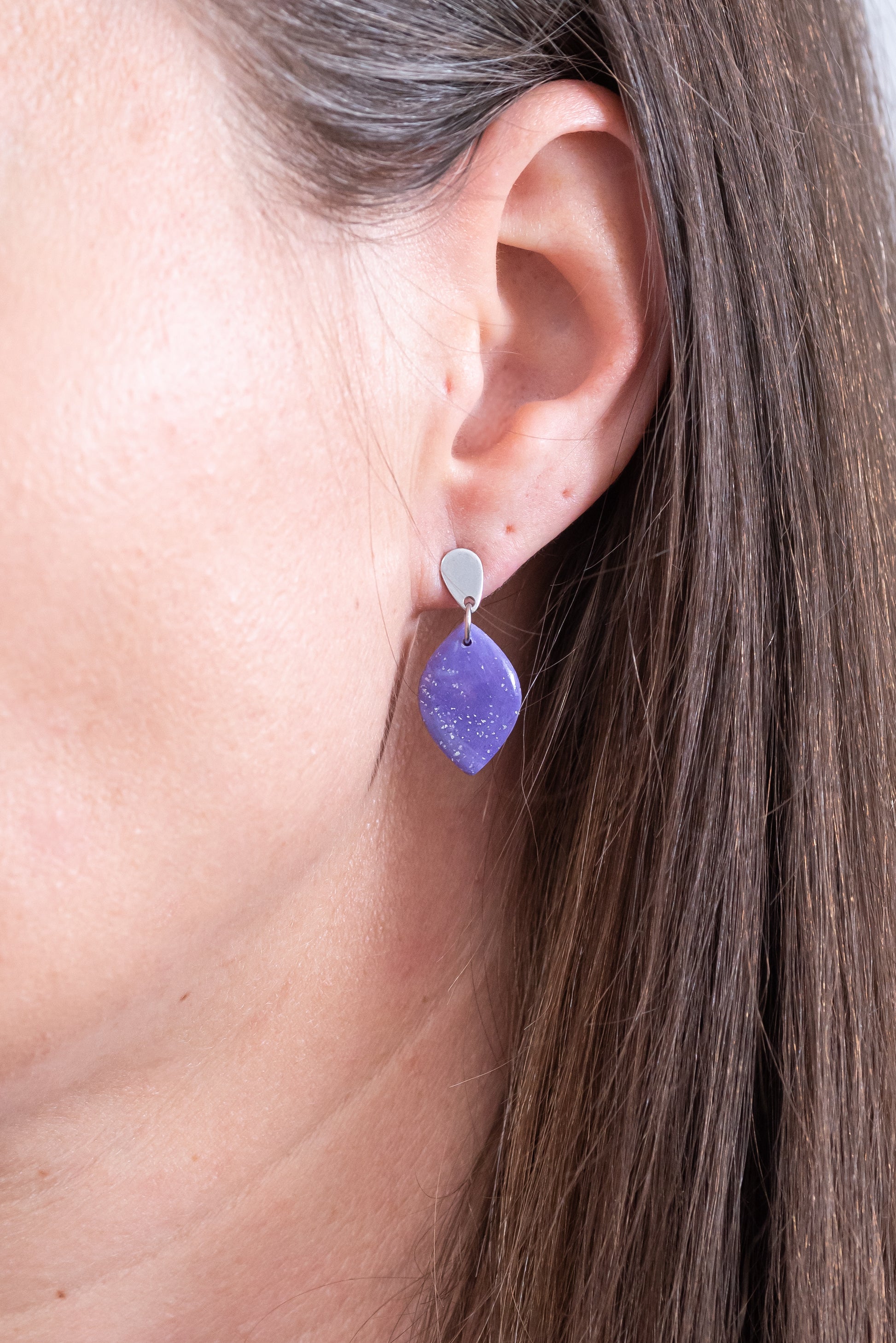 Violetta kicsi csüngős fülbevaló többféle formában, márványos lila színben