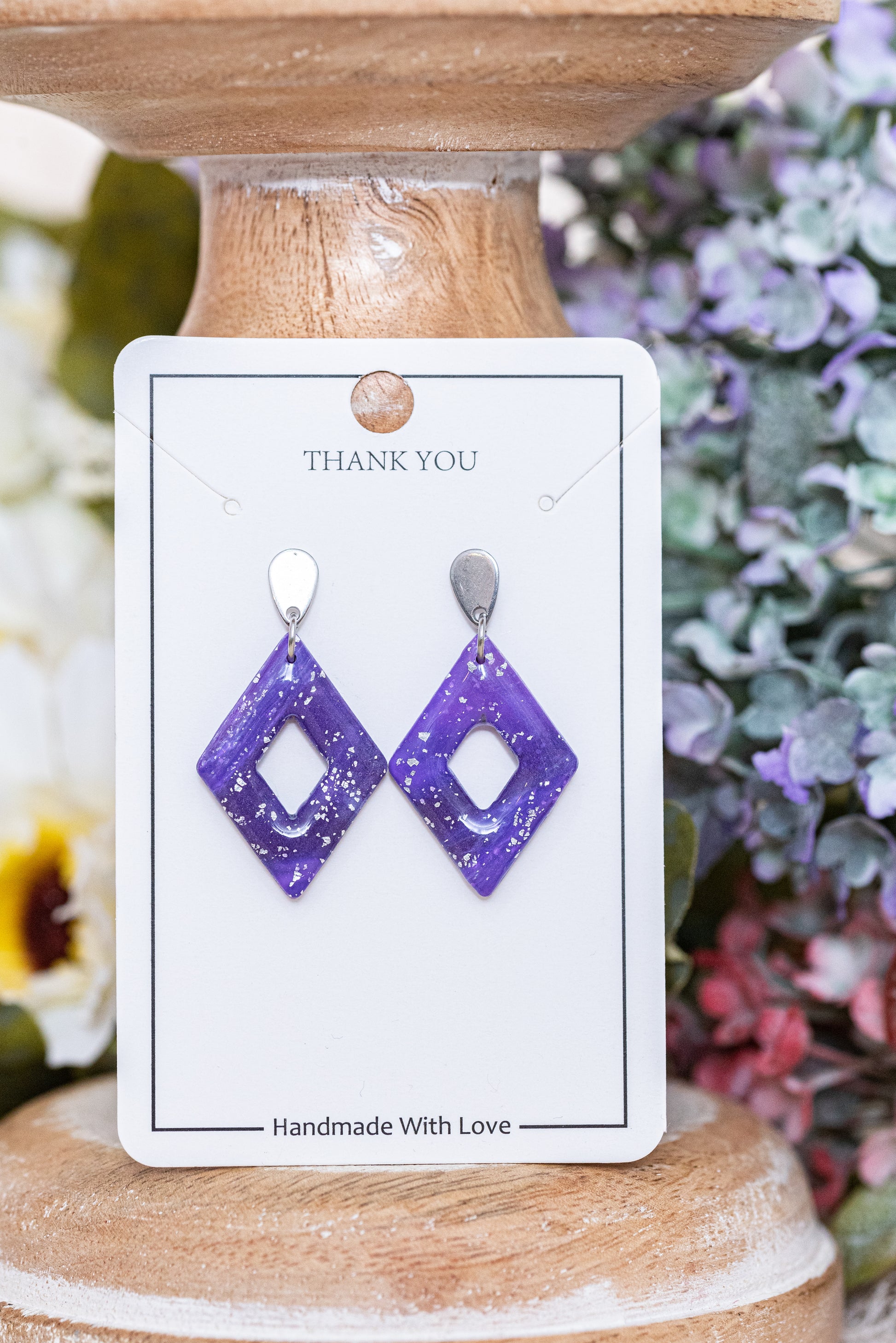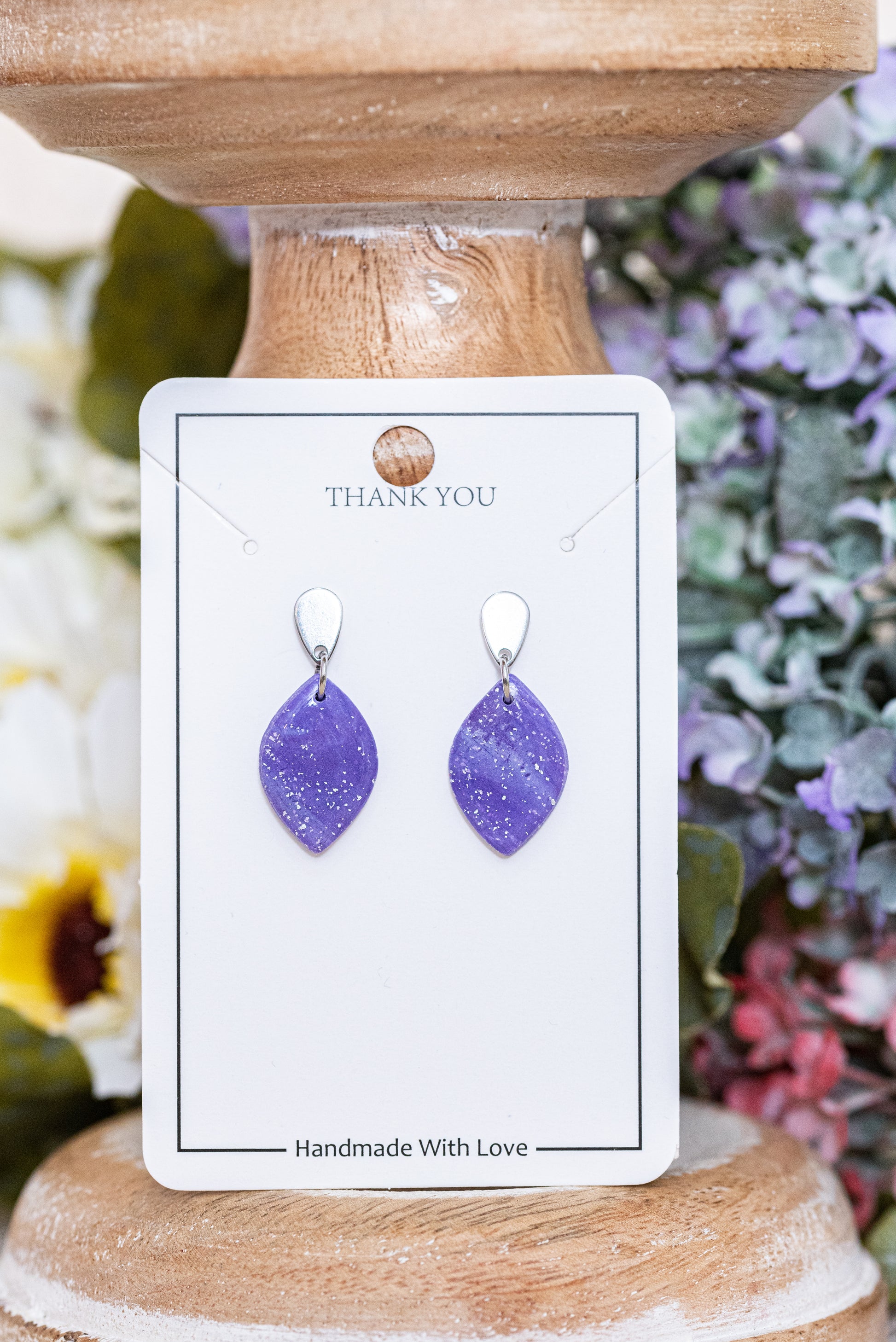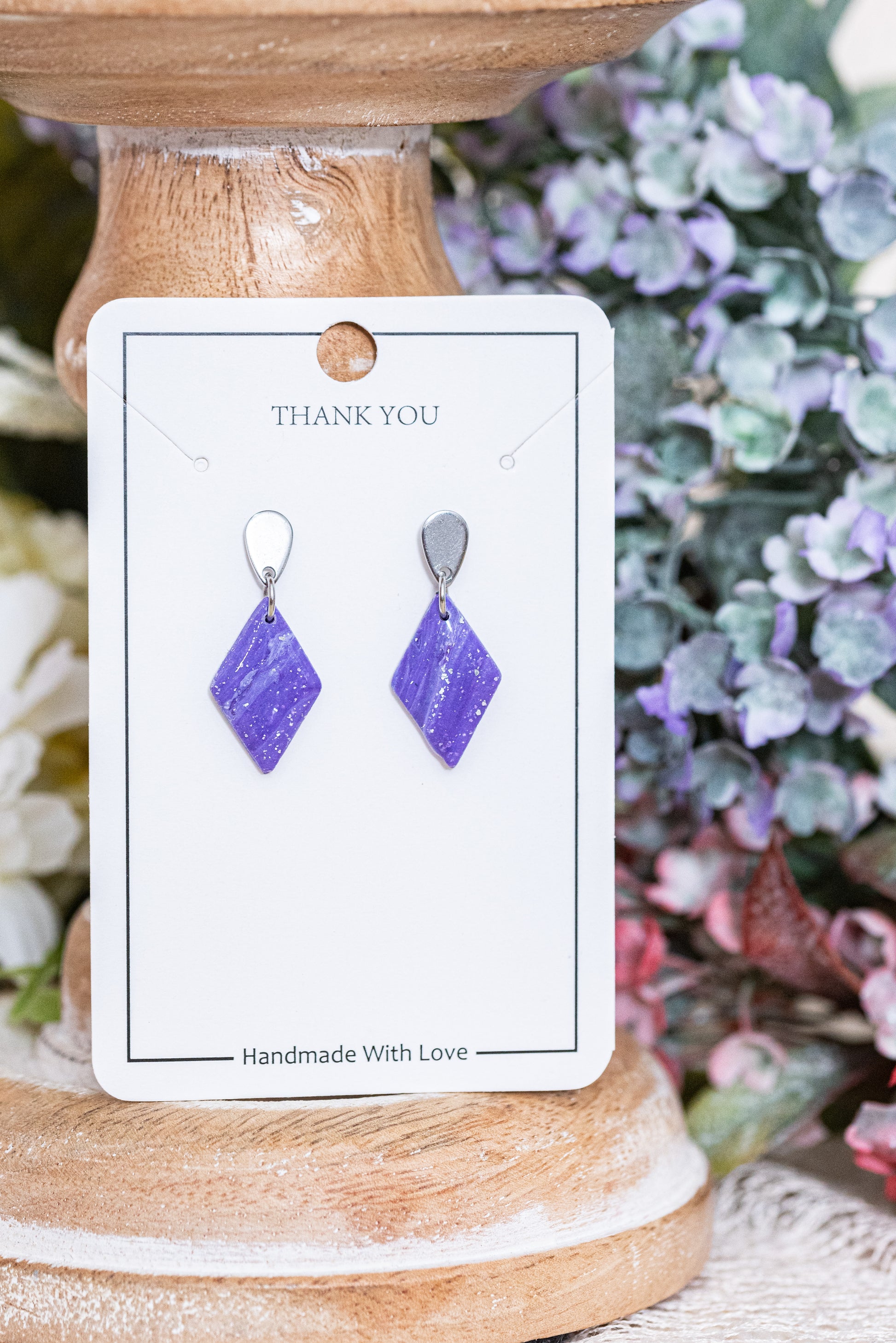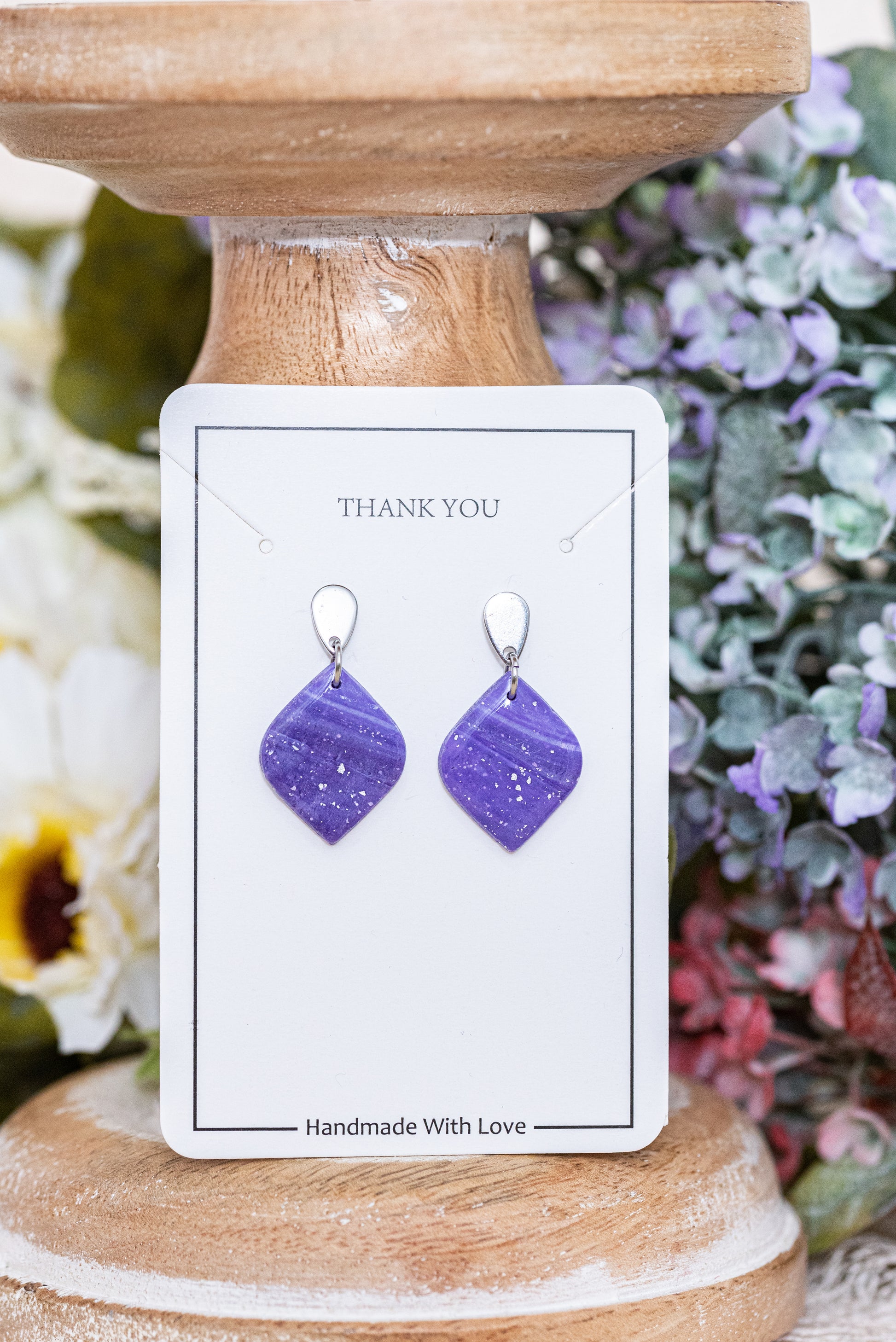 Violetta kicsi csüngős fülbevaló többféle formában, márványos lila színben