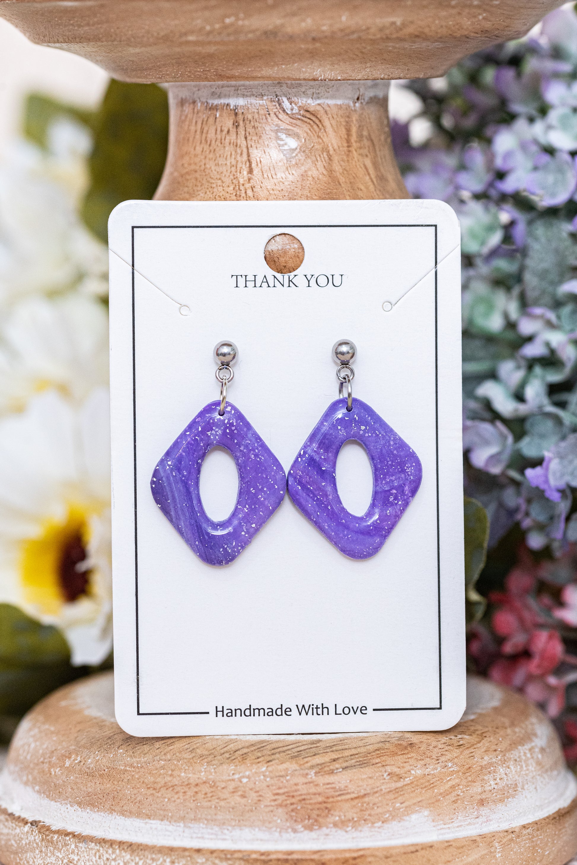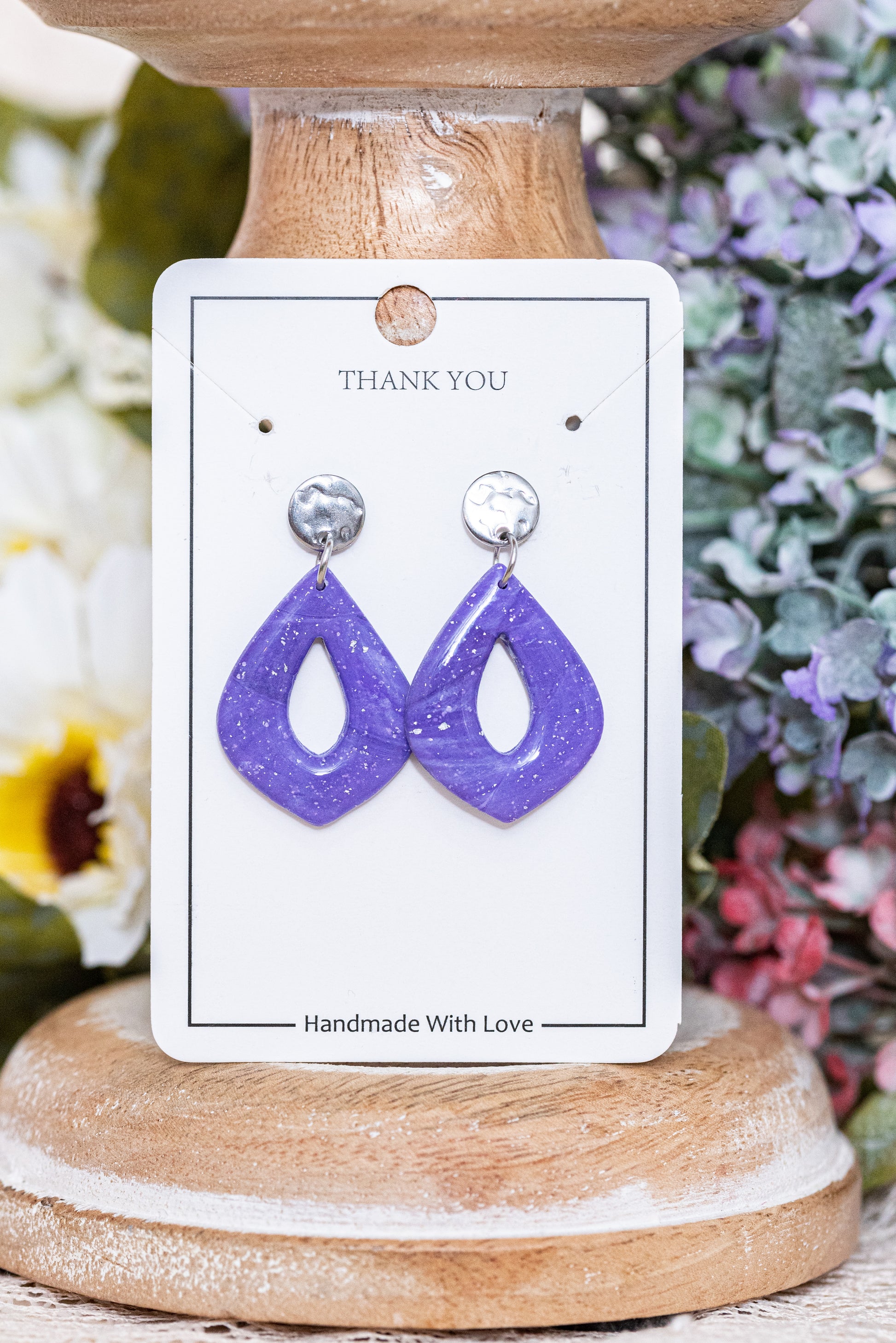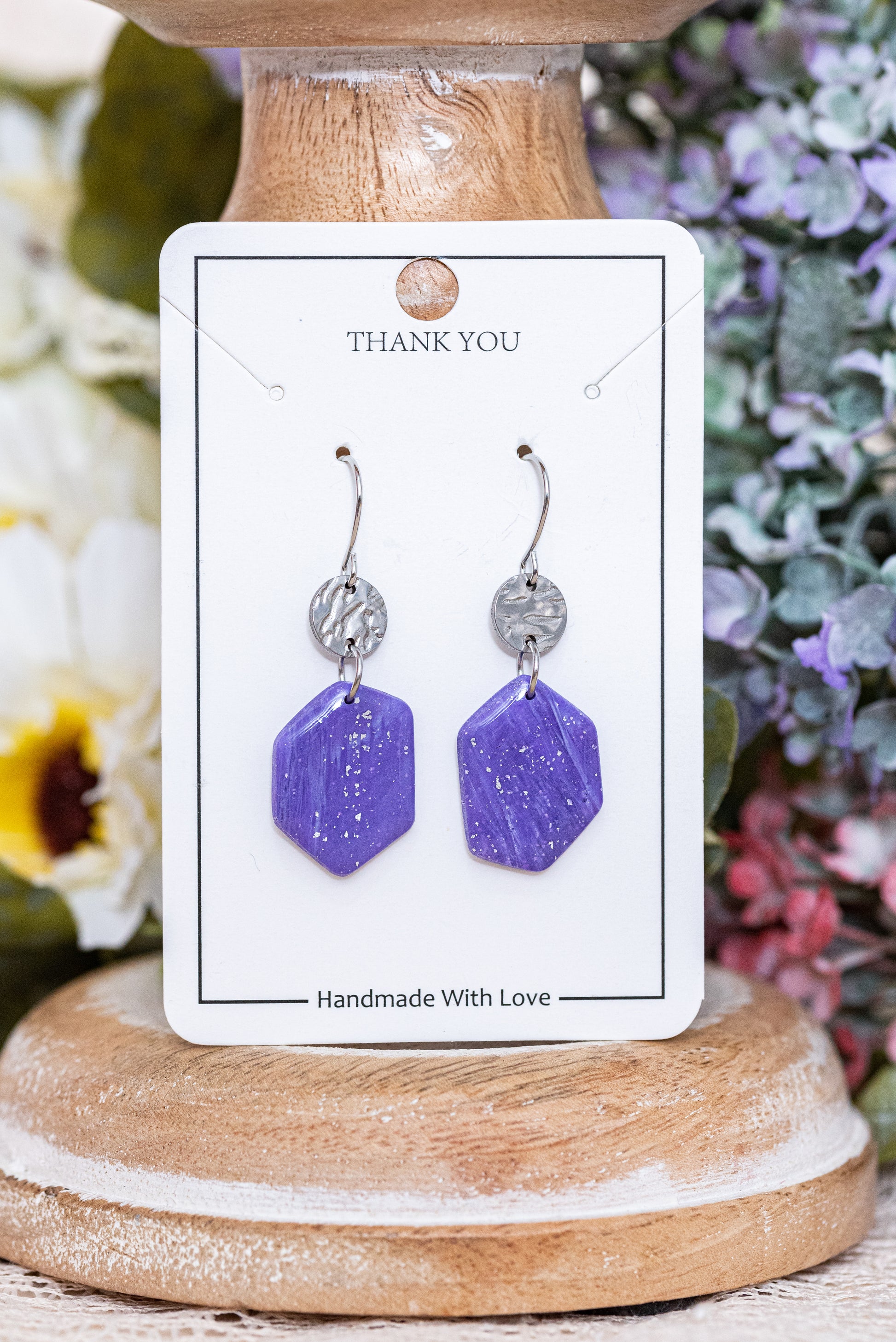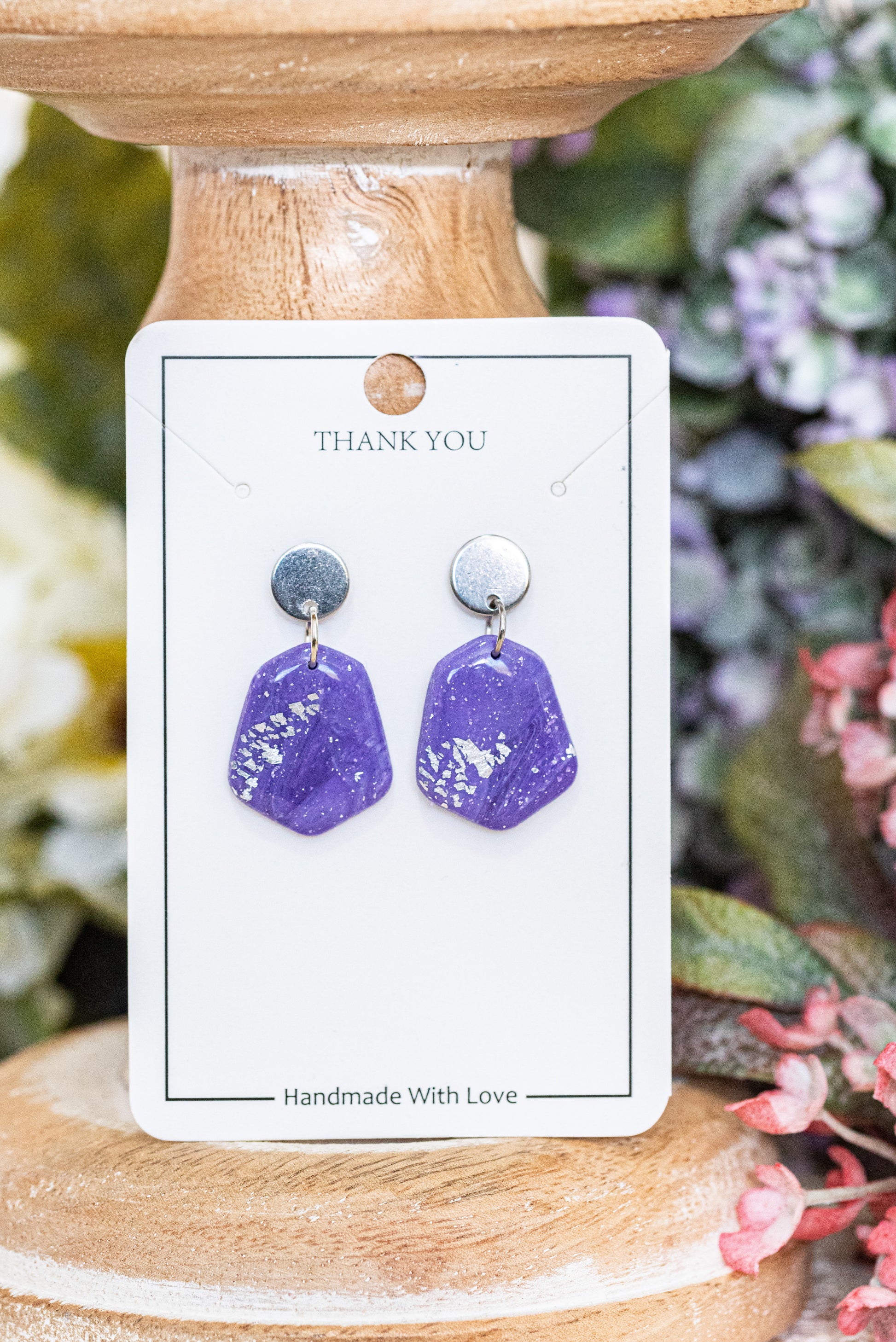 Violetta nagyobb csüngős fülbevaló többféle formában, márványos lila színben